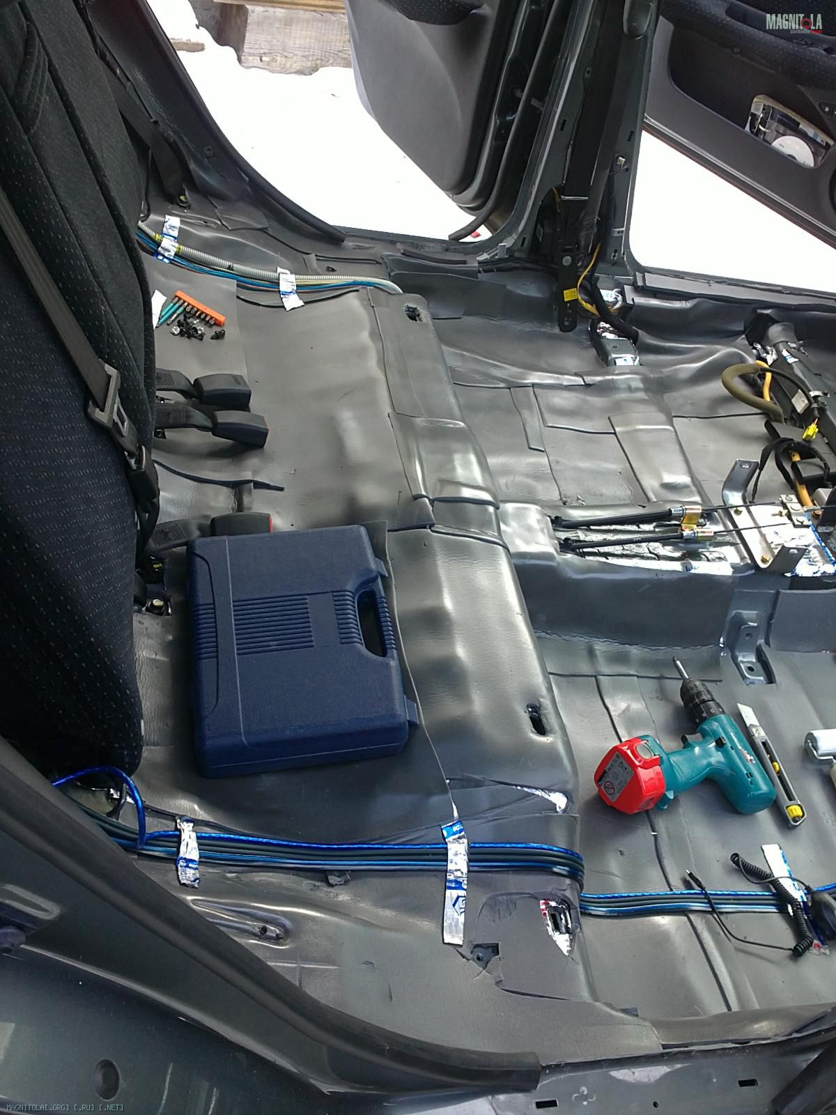Справа межблоки, слева силовые с акустикой, думаю заодно акустику подальше от питания пущу. В сонате очень легко разбирается салон, за час можно до голого пола все снять.