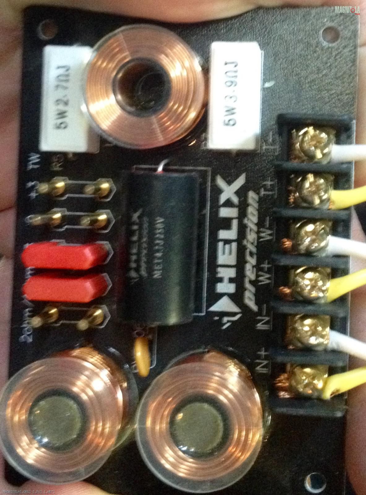 В Helix hxs(считай дедушка H-серии) такие же кросы, с одним лишь отличием - катушка на мид одна. а тут две для возможности подключения сдвоенного мидбаса, перемычка есть на 2 либо 4 Ом.