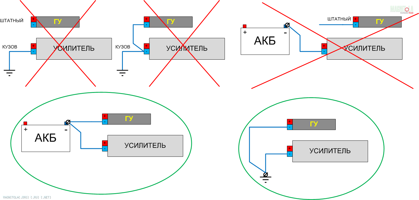 P.S. Встречаются Маки с неизолированной внутренней землёй. Для них важно, что бы корпус усилителя не имел электрического контакта с металлическими частями автомобиля.