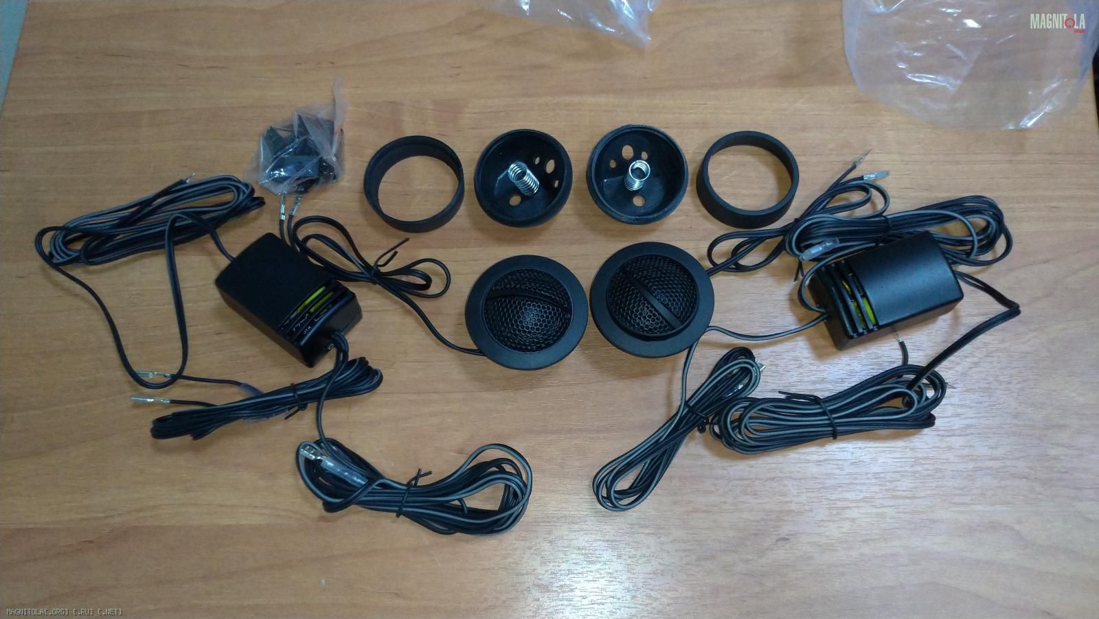 Как видим на фото, в комплект поставки в наборе всё для двух вариантов крепежа твиттеров, в плоскость и на плоскость под углом.
