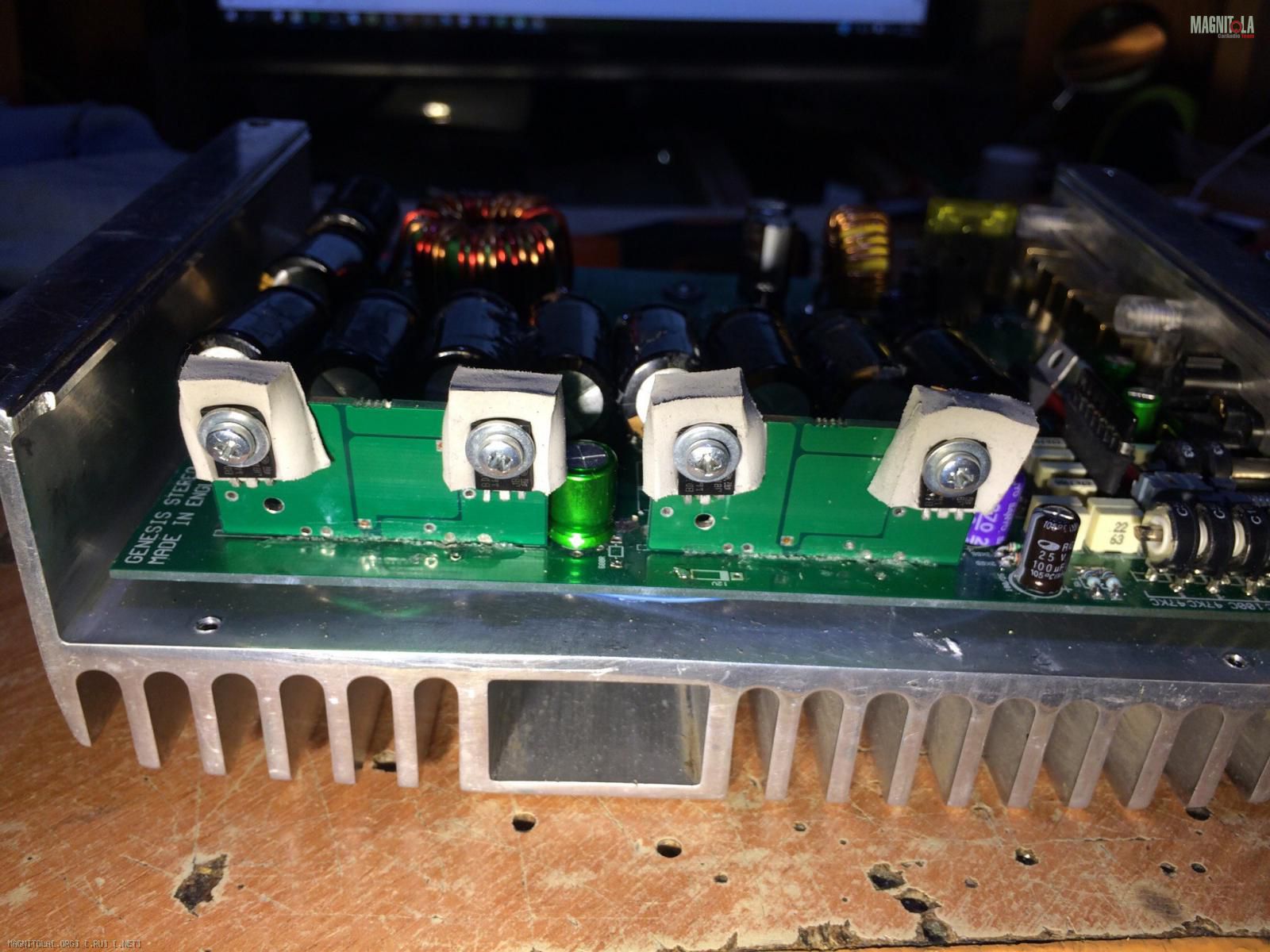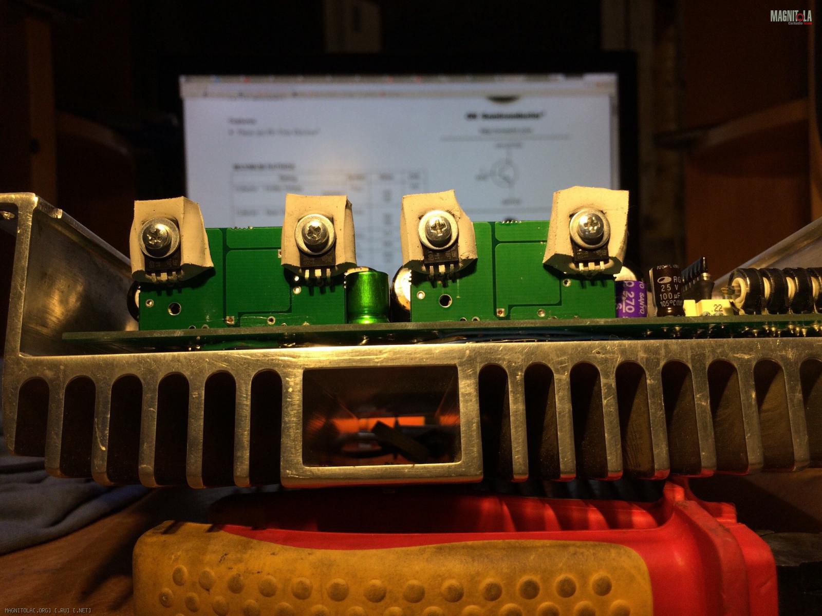 А вот эти прокладки под транзисторами, очевидно это для теплоотвода на нижнюю крышку - жуть какая. Я бы реализовал не так. Можно сделать аккуратные Г-образные подложки и уже их контачить с крышкой, через те же прокладки, только тоньше.