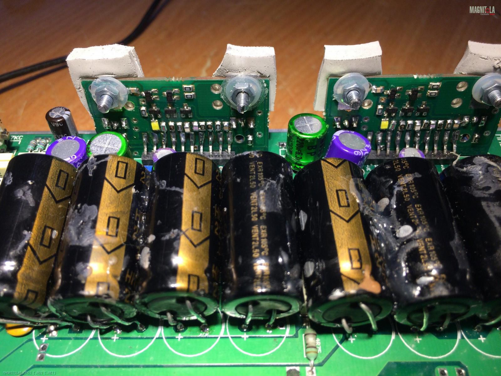 Клеем заляпаные кондеры. На звук точно не влияют.