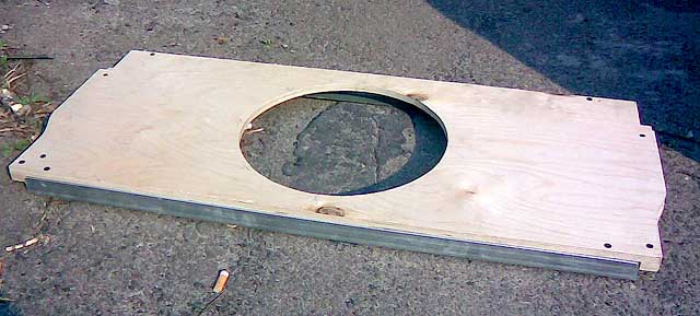 Из водостойкой фанеры 10-12 мм (лучше 12, толще - незачем) вырезаем контур неподвижной части полки, которая и будет нести саб.