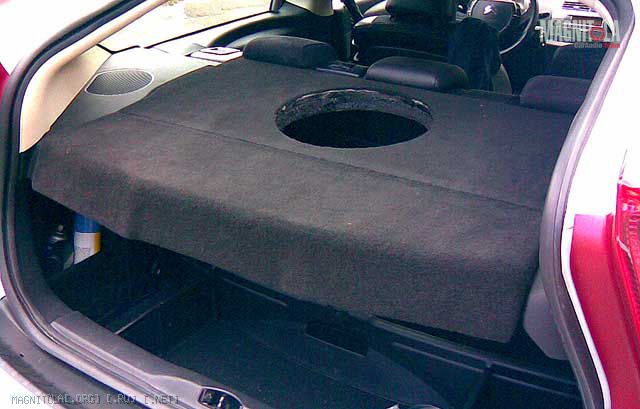Но думаю, что скоро спрячу его с глаз долой, освободив багажник полностью. Сабвуфер-то места не занимает - на фотке видно, что он вниз практически не свисает...