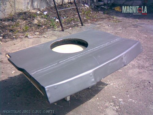 P.P.S. Получается пакет из разнородных материалов: стальной короб с разнесенными фанерками. Фанера из-за разнесения работает на растяжение а не на изгиб, а на растяжение она намного жестче. Пенный наполнитель отлично глушит резонансы и держит фанерки, не давая им расходиться. Из-за казалось бы простой пены полка стала "бетонной" прочности по сравнению с тем что было до заполнения пеной. (Кстати, пену выдавливает в дырку под саб, и углы остаются пустыми. Я сделал в фанере четыре 8мм отверстия по углам, через которые поддувал пену, чтобы заполнение получилось равномерным.) При этом вес конструкции получается минимальный при солидной прочности. Легче при той же прочности можно сделать, наверное, только из карбона.