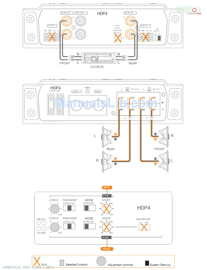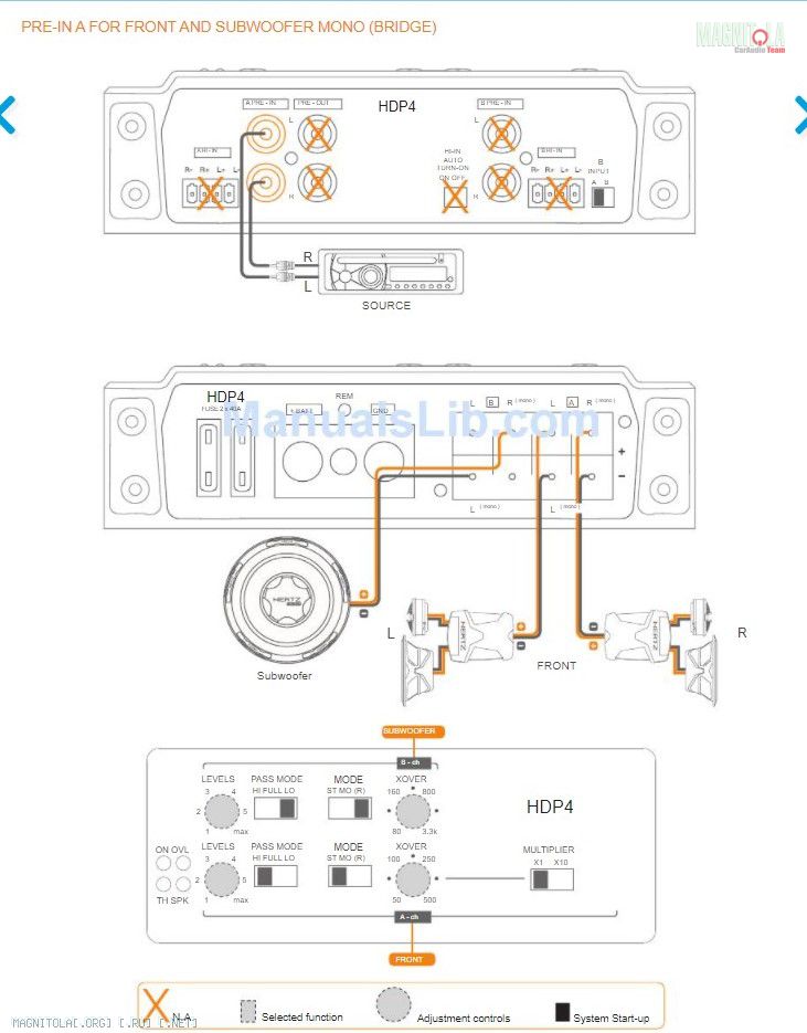СЧ (порежем HPF на ГУ) + Саб (порежем LPF на ГУ) подключим к 1. Hertz HDP 4.