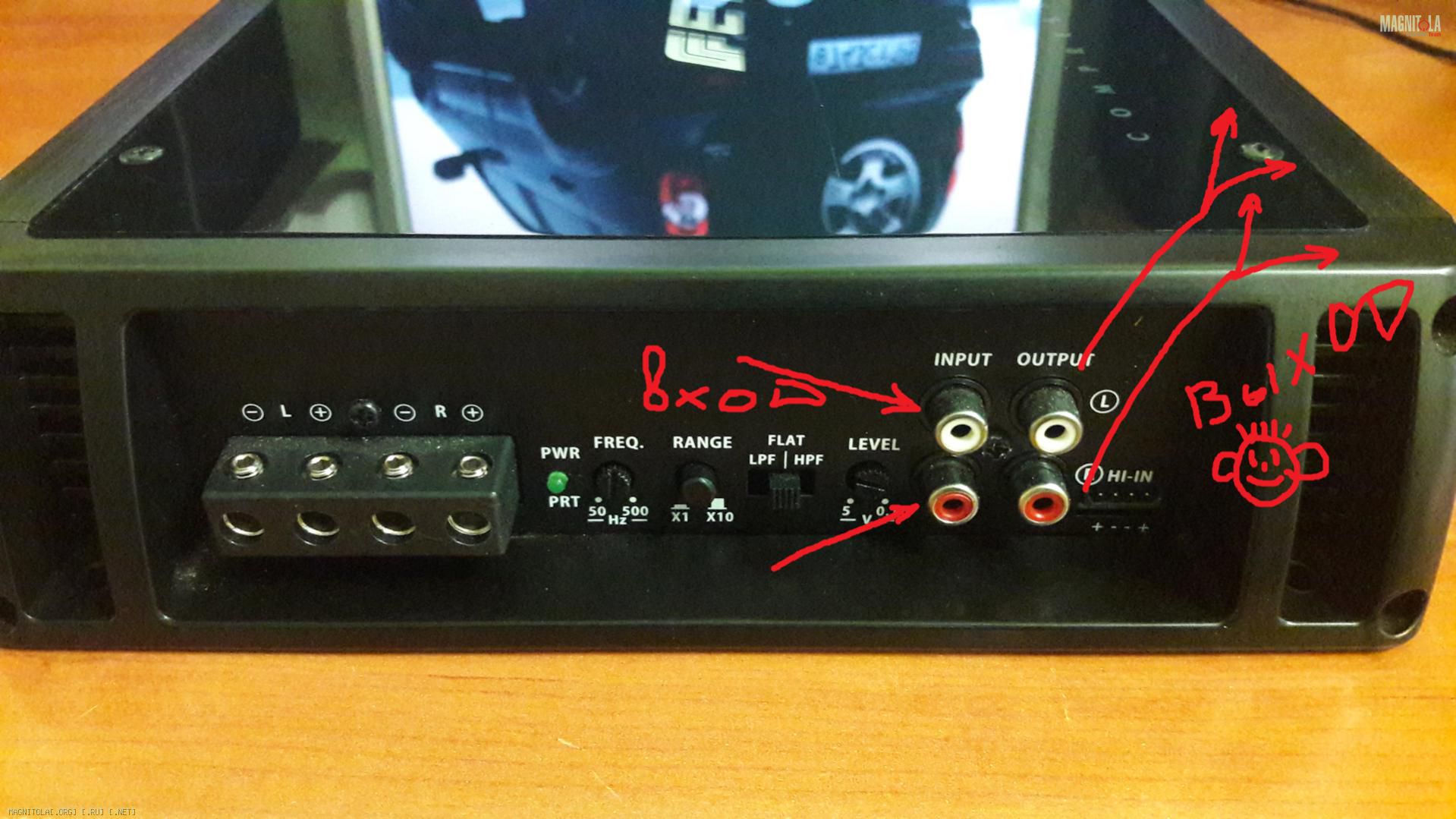 1. выход RCA магнитолы соединил с входом RCA усилителя Урал. Выход RCA усилителя Урал соединил со входом RCA усилителя DLS.