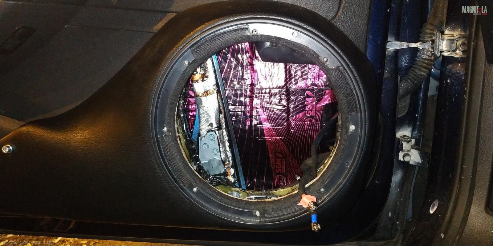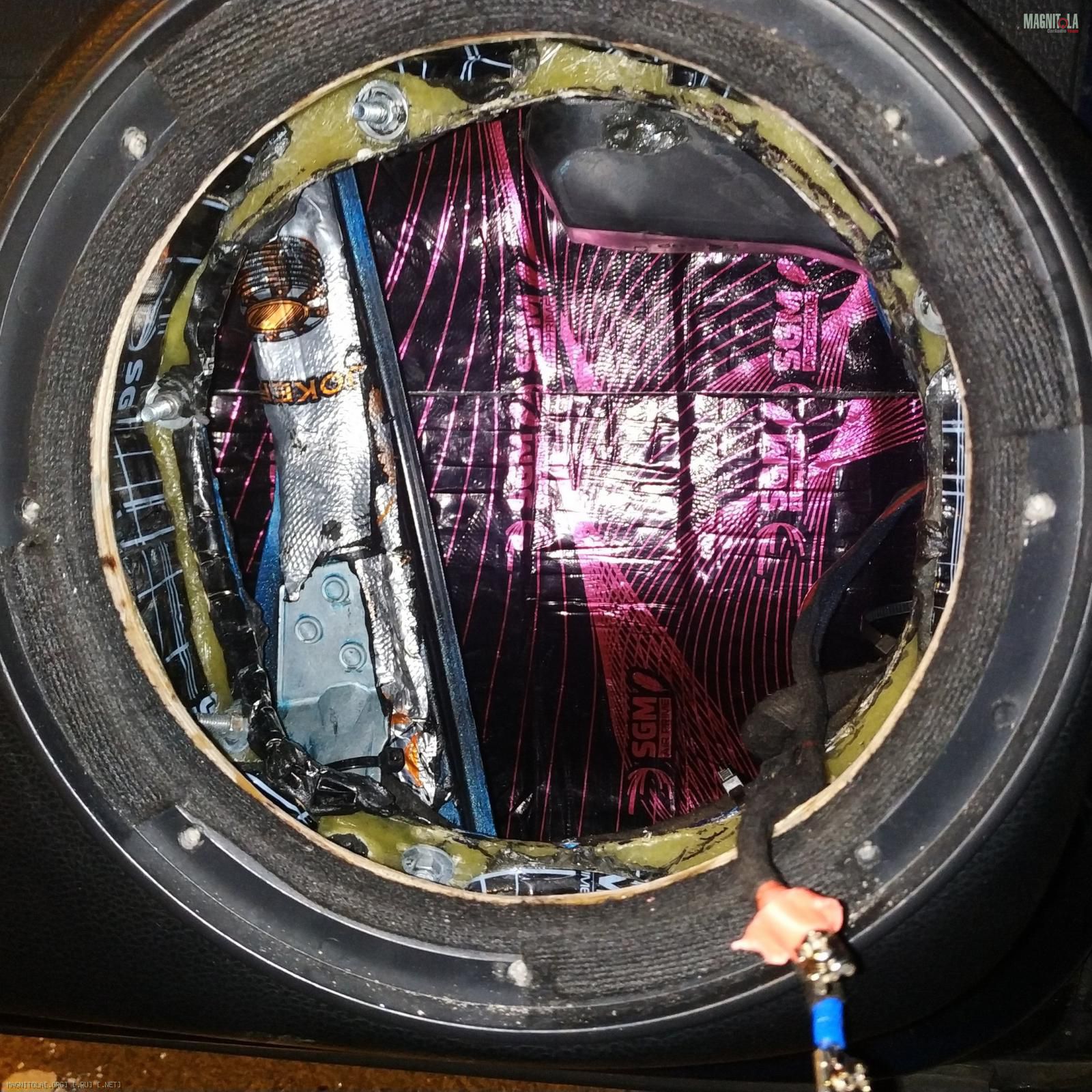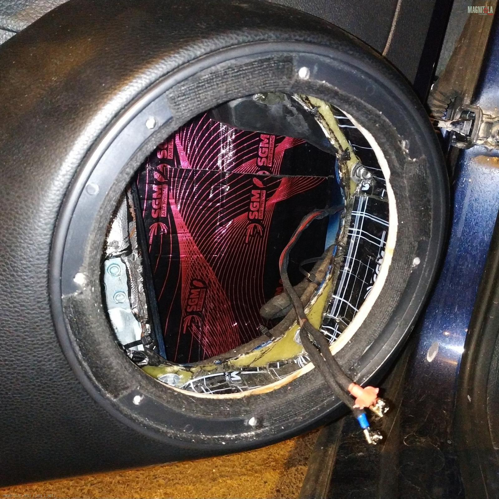 Крутил-вертел экспериментировал с доворотом наверх, назад, в мотор и в пол. Остановился действительно на направлении назад. Вложение 1349559 Заодно наклеил за динамиком StP Crystal Sound из принципа "хуже уже некуда".