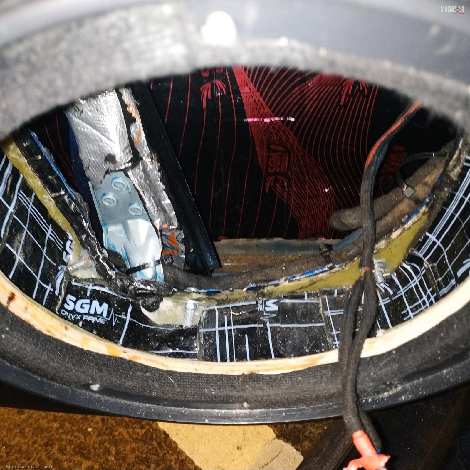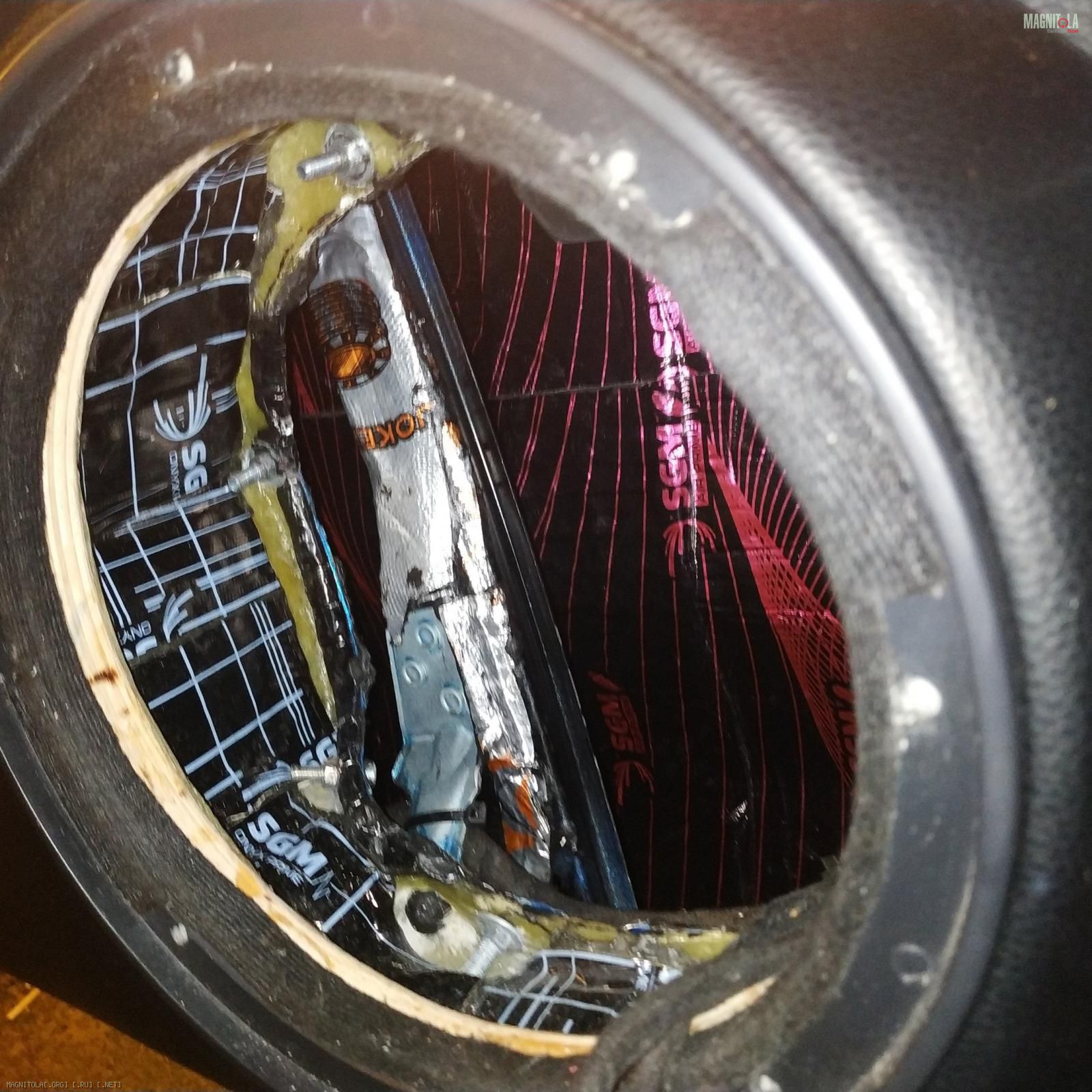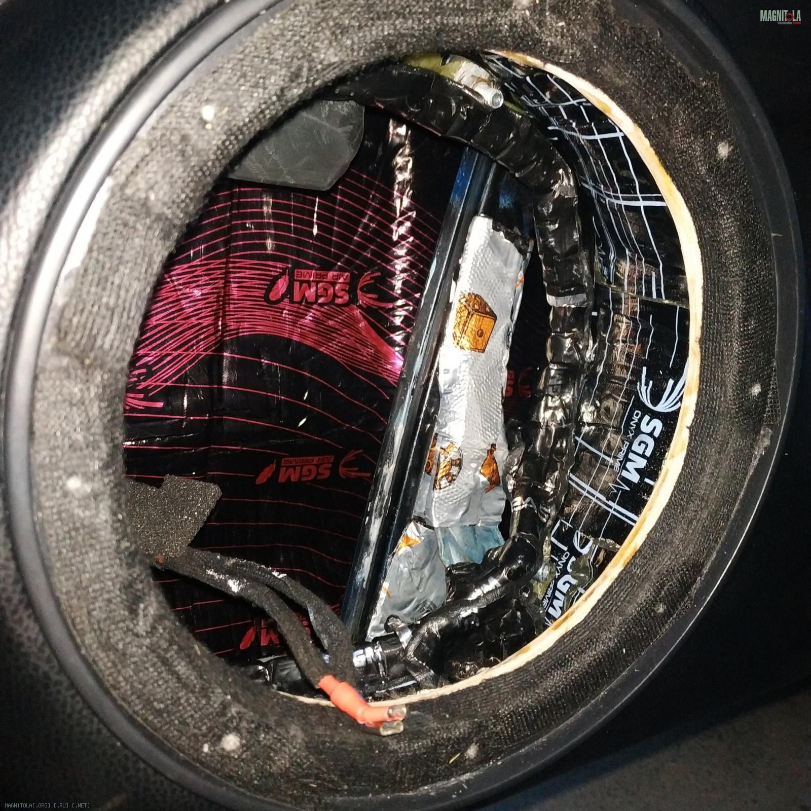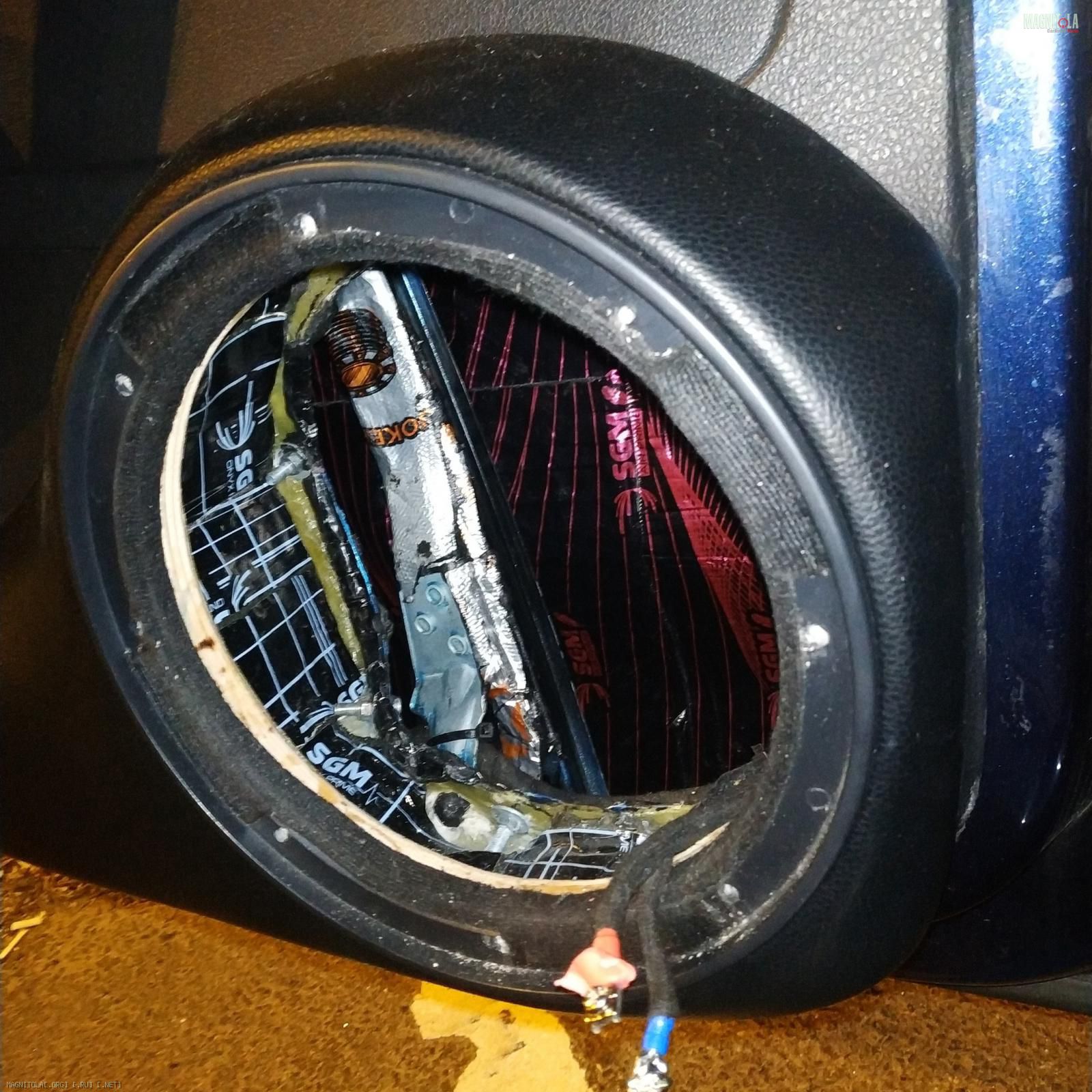 Крутил-вертел экспериментировал с доворотом наверх, назад, в мотор и в пол. Остановился действительно на направлении назад. Вложение 1349559 Заодно наклеил за динамиком StP Crystal Sound из принципа "хуже уже некуда".