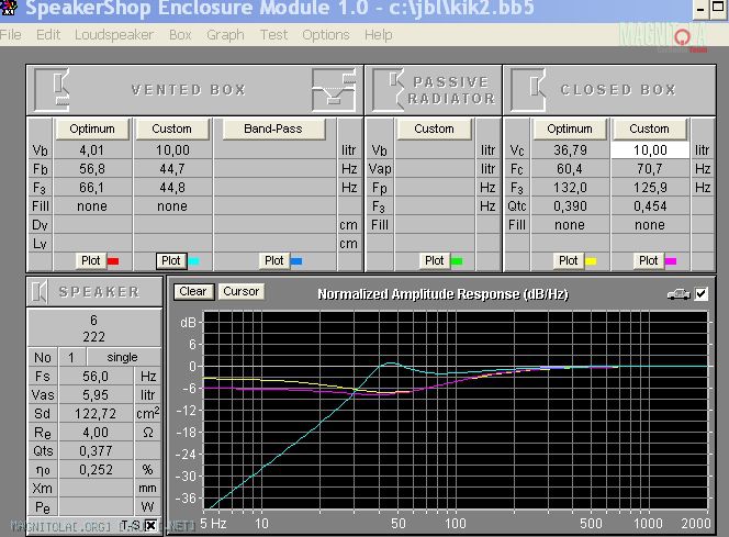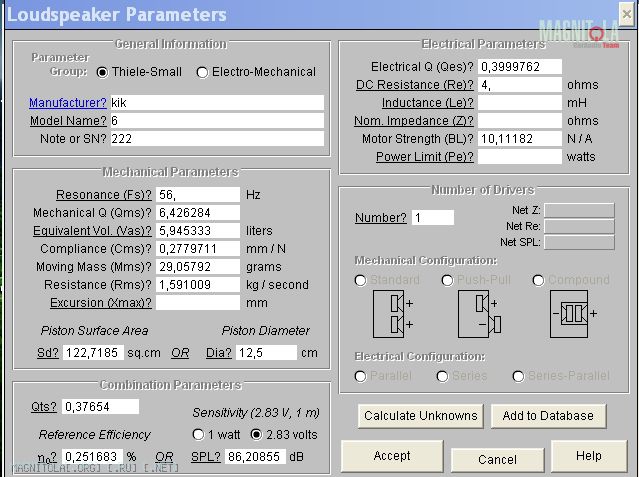 Снимаю меряю параметры полная добротность равна 0.41 на одном 0.45 на другом просится закрытый ящик 10л с фазоинвертором.