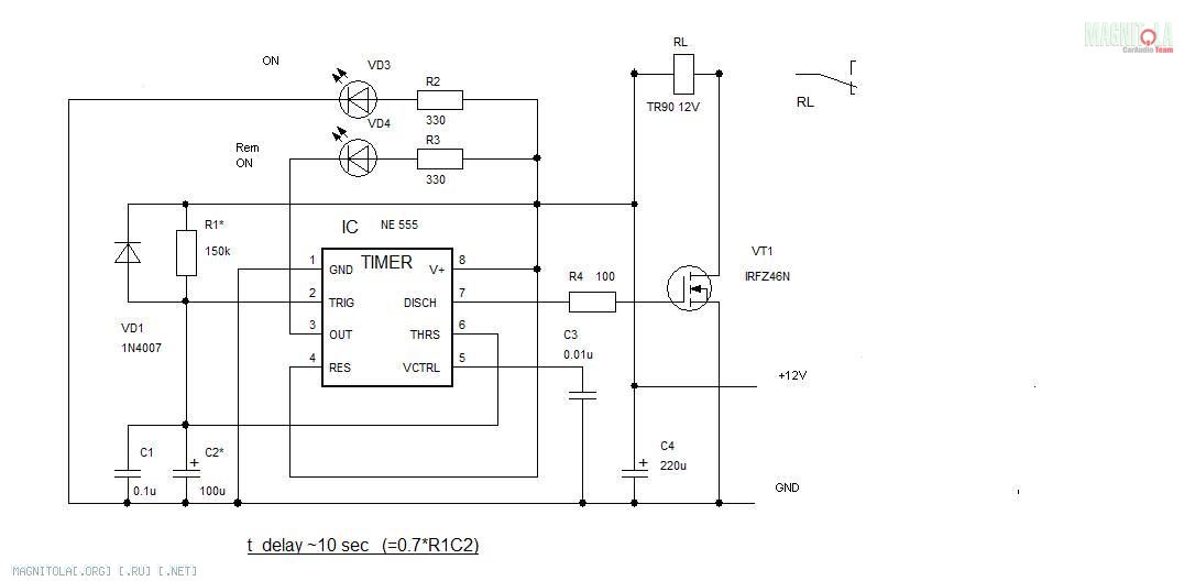Себе ставил реле включения в систему. Брал в Электромонтаже обычное 12В реле времени, ставил в разрыв ремоута.