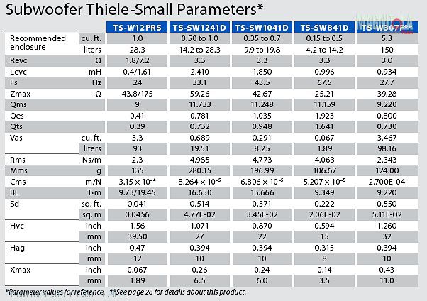 То есть, чтобы построить ФЭ в багажнике объемом 50 литров нужно брать саб с Vas не более 16.5 литров и подходящей добротностью Qts: ниже 0.4 нежелательно, как и выше 0.9 (хотя на вкус и цвет.. ), оптимально Qts в диапазоне 0.55 ... 0.75. Ну и Fs желательно не слишком низкую, где-то в диапазоне 30...40-45Гц приемлемо.