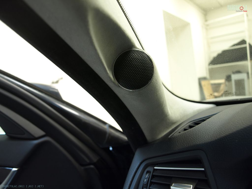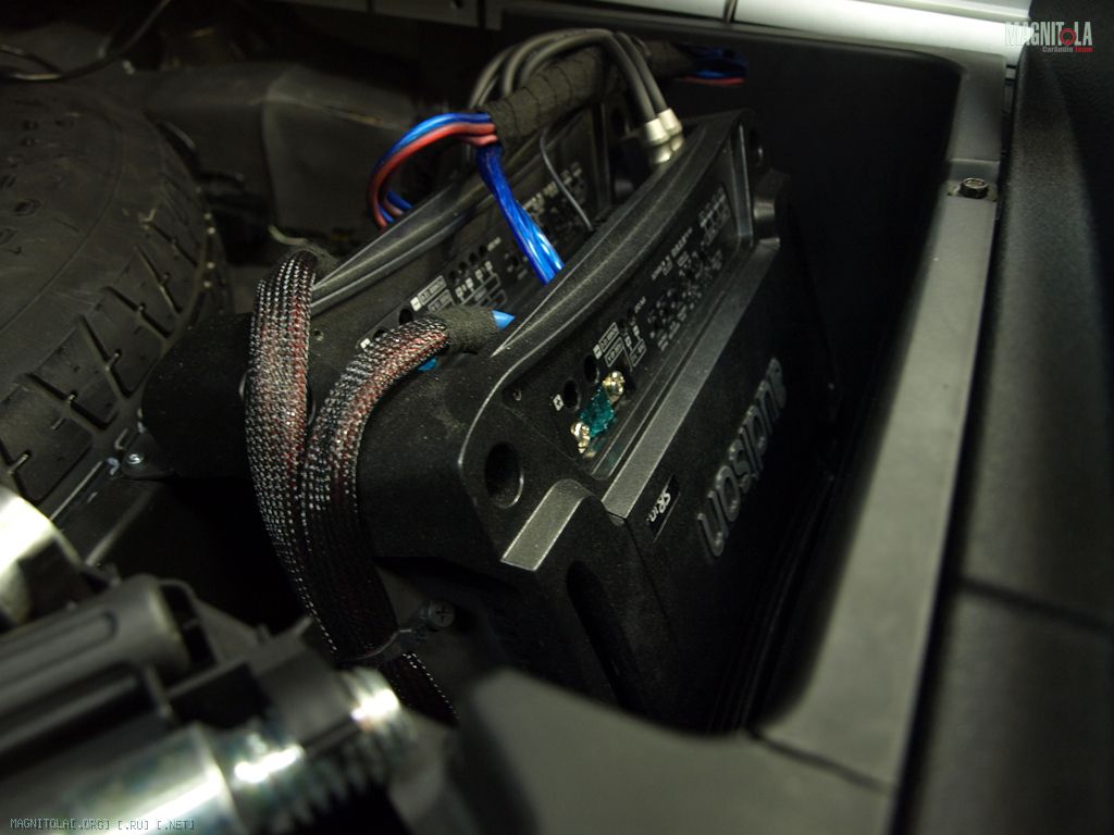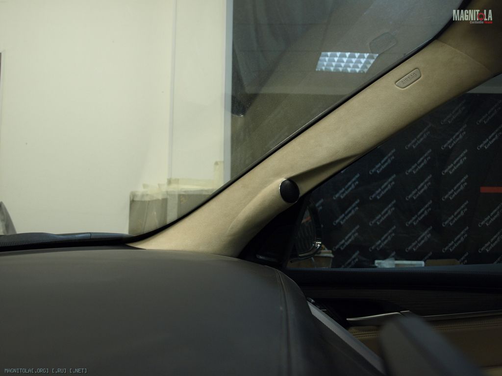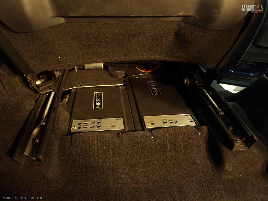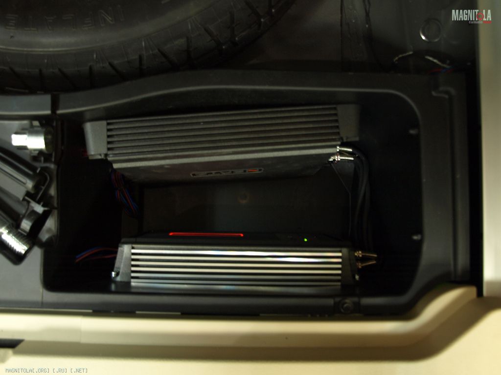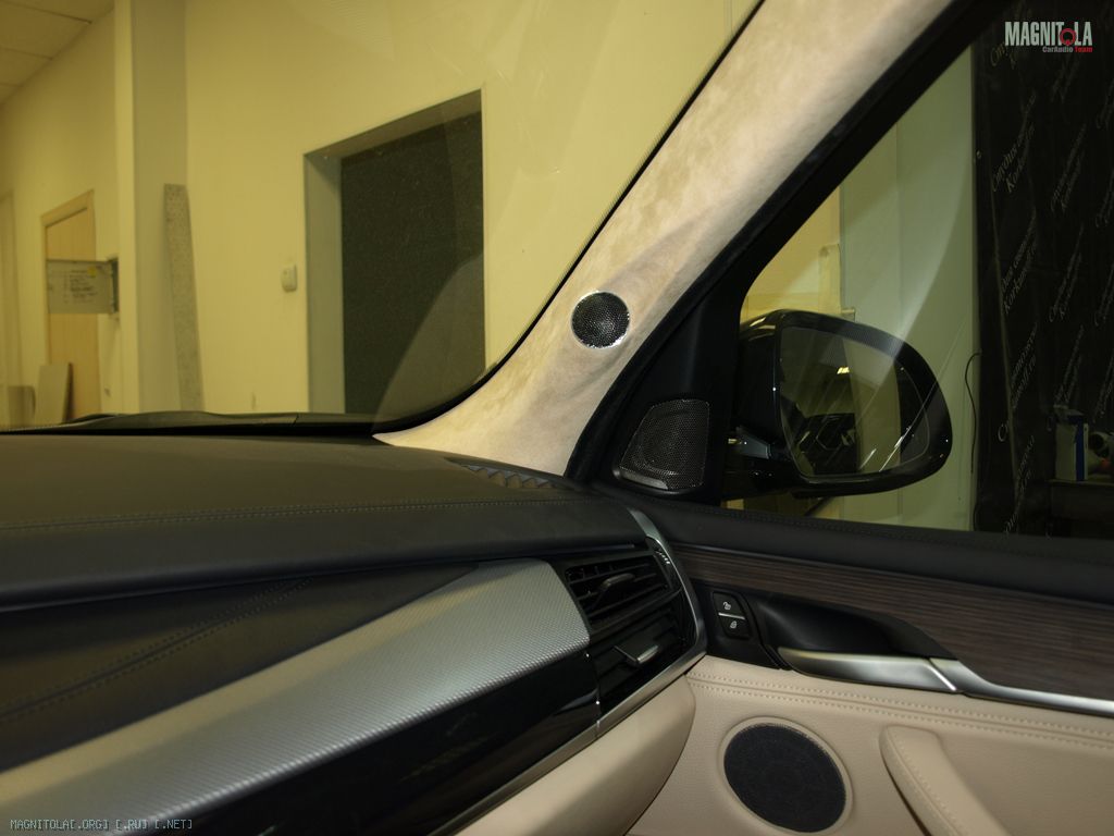 Первый Х5 оснащён заводским Harman/Kardon, который мы безжалостно демонтировали. Изюминкой системы являются ВЧ динамики, легендарные итальянские AD MM1 от Audio Development, установленные в передние стойки. Источник, как обычно штатный, с цифровым адаптером Триома отдающим сигнал в процессор Helix. СЧ и НЧ динамики уже известной французской компании Blam. На ВЧ и СЧ работает усилитель Hertz HCP4D, на НЧ и сабвуфер усилитель Hertz HDP4. Сабвуфер в этой системе так же Hertz ES250.