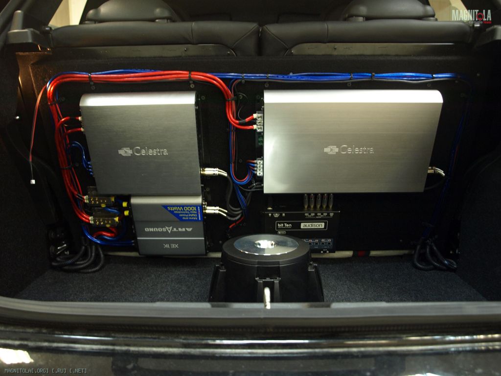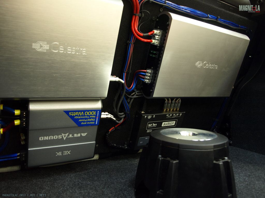 Второй автомобиль несколько иначе построен. Акустика по штатным местам полностью французского бренда Blam. Усилитель на фронт Eton SR60.4, ArtSound XE1K на сабвуфер Hertz ES250D. Процессор Audison Bit Ten D подключен так же по оптике.