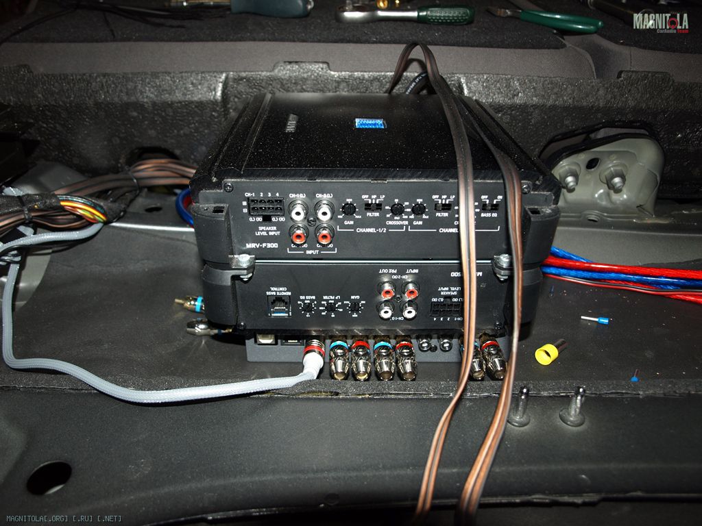 Привет всем! В данный момент делаю инсталляцию в свой автомобиль имеется вопрос с подключением усилителя каркуноф четыре канала. Усилитель будет играть на вч и сч. Приятель предлагает следующую схему подключения,поскольку это двойное стерео он хочет на одну пару усилителей подключить вч,а на другую сч.