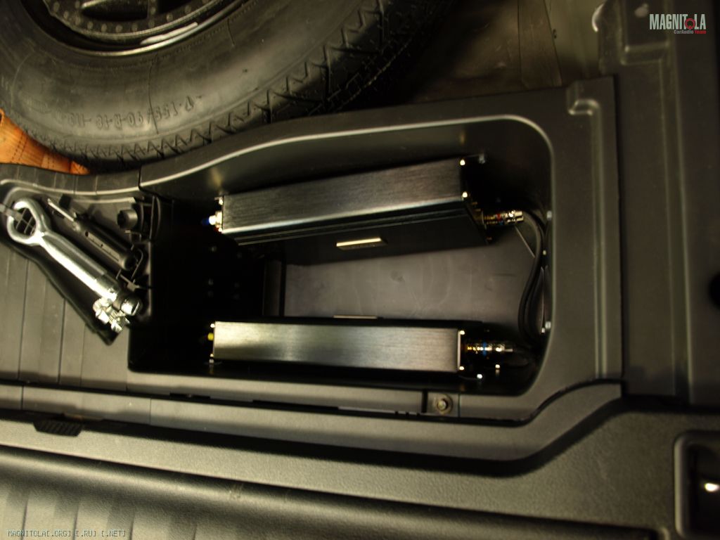 Акустическая система представлена нашей любимой связкой AD и BLAM - твитеры Т100, СЧ W4 и низ 200XF. За суббасовый диапазон отвечает JL Audio 10W1.
