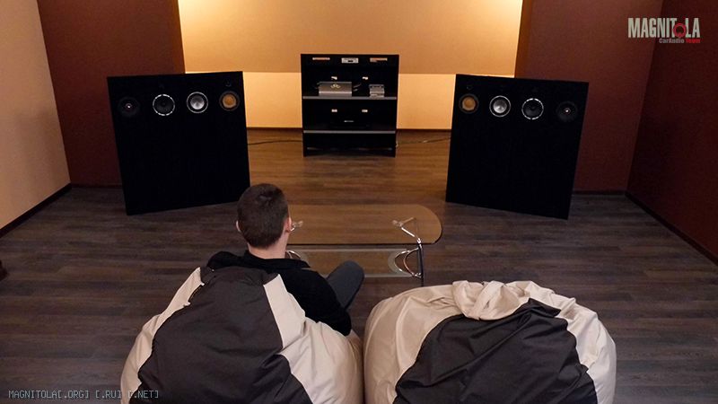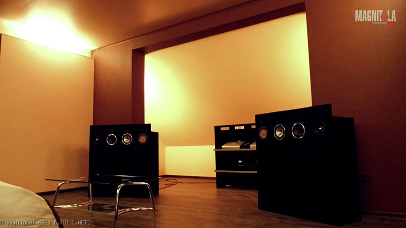 Фронтальная акустическая система трёхполосная со сдвоенными мидбасами.