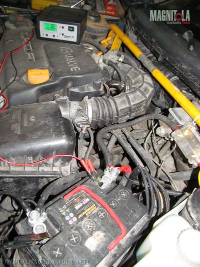 Для предотвращения разрядки АКБ во время настройки было подключено зарядно-предпусковое устройство "Вымпел-55" на напряжение 14,5В и ток 10А. Вложение 965936