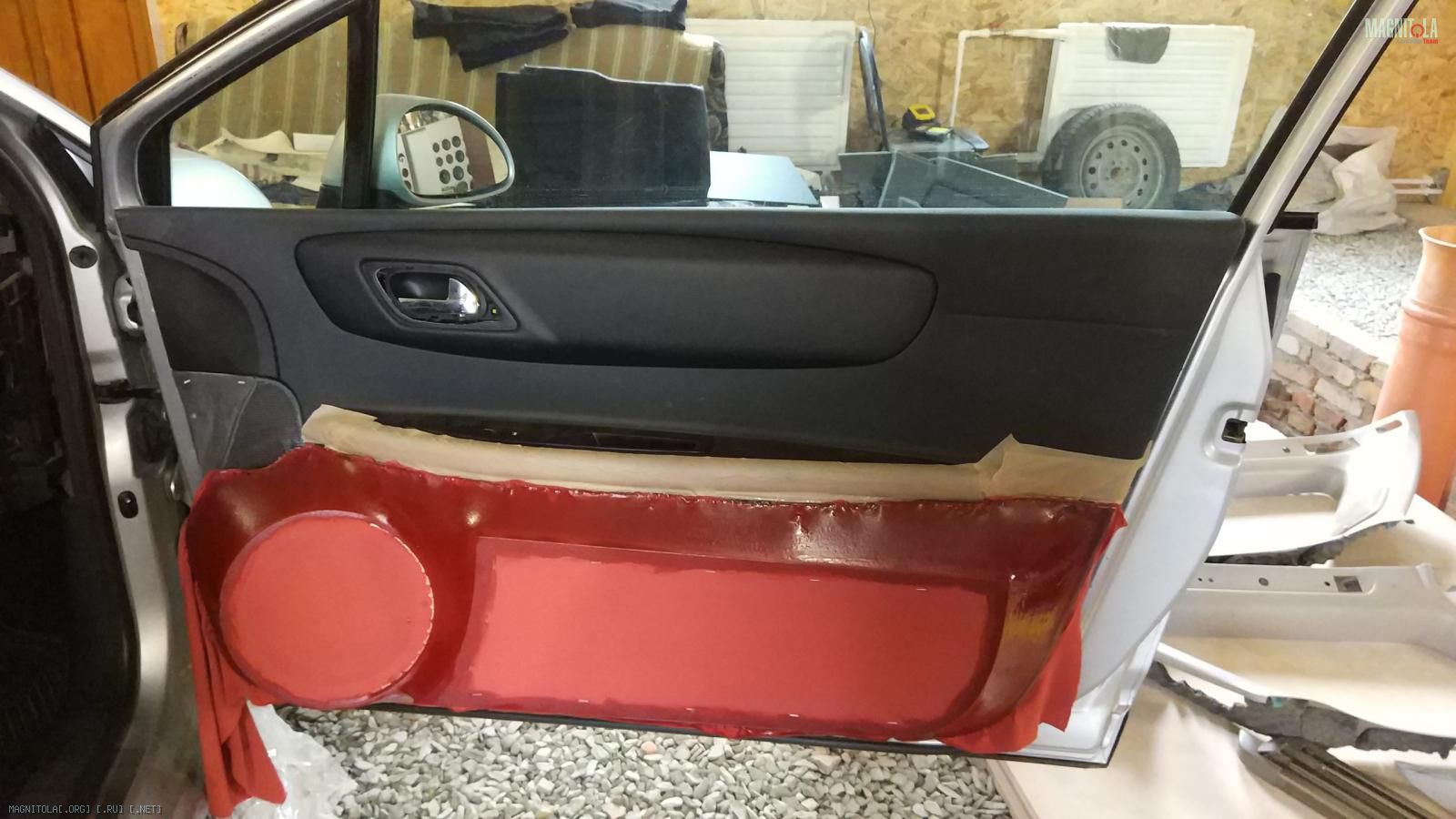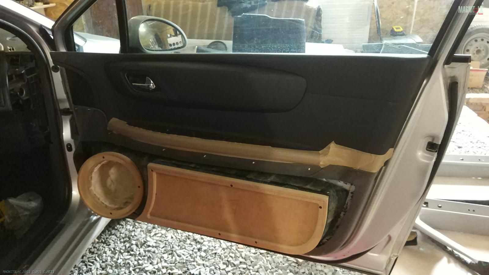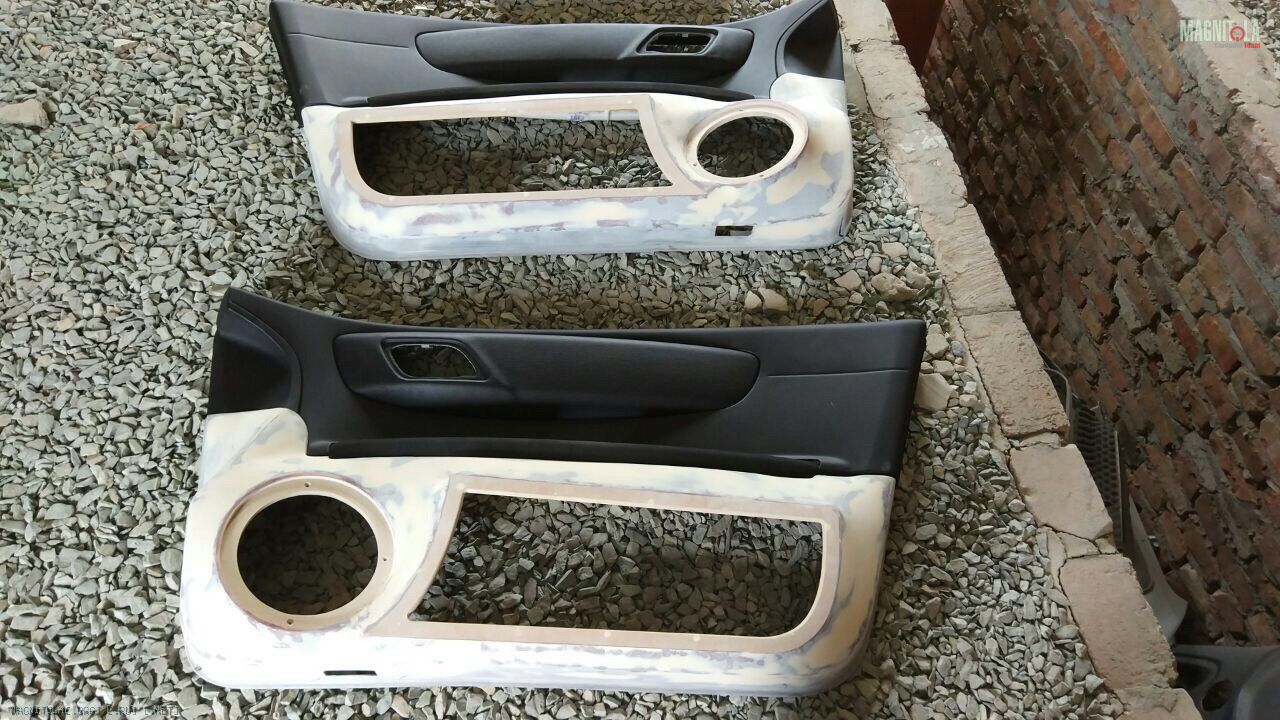Далее по форме ЗЯ начал выливать наружную декоративную панель, которая в дальнейшем и будет являться самой дверной картой, которая очень плотно прилегает к расположившемуся под ней закрытому объему для шикарного мидбаса в своей ценовой категории Ural Warhed AS-W200MB.