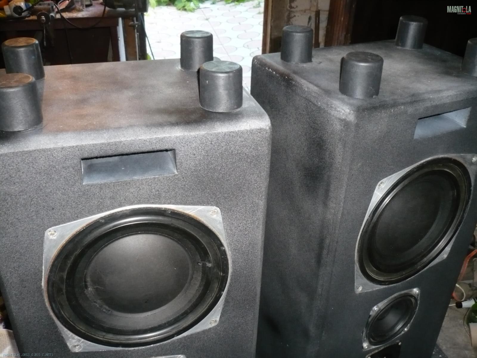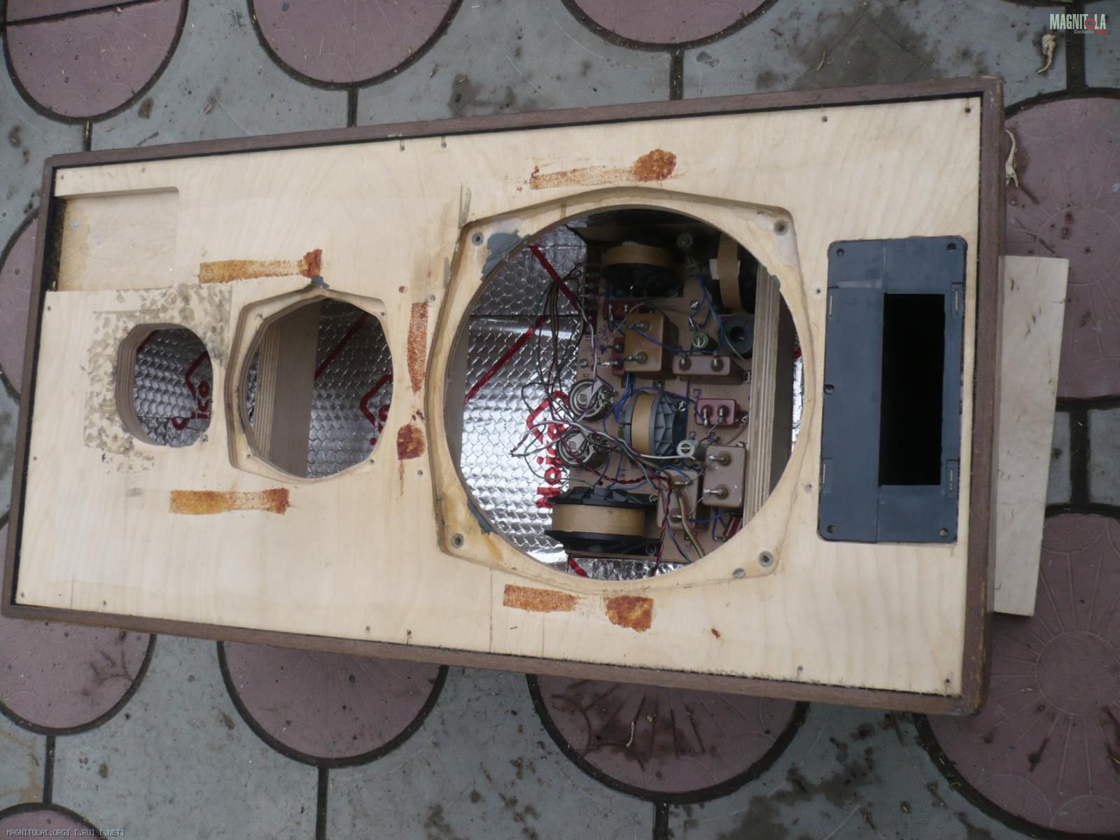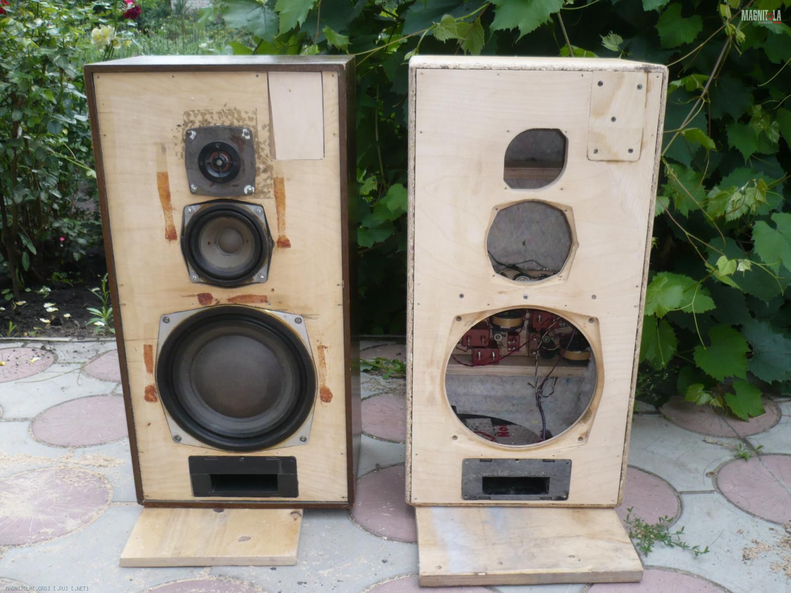 Ко мне они попали в довольно ушатанном состоянии. ВЧ - одна не играла. Вторая сильно кричала. Корпус подзвякивал, т.к. время давало о себе знать, эти колонки мне ровестники, а у них только фронт. стенка из фанеры, остальные стенки из 18 мм ДСП. ДСП по акустический свойствам лучше чем фанеры. Но она со временем привращается в труху, особенно если попадала влага. Вообщем корпуса были не какие, все пошорканные, сетки держались на соплях мятые и т.д.