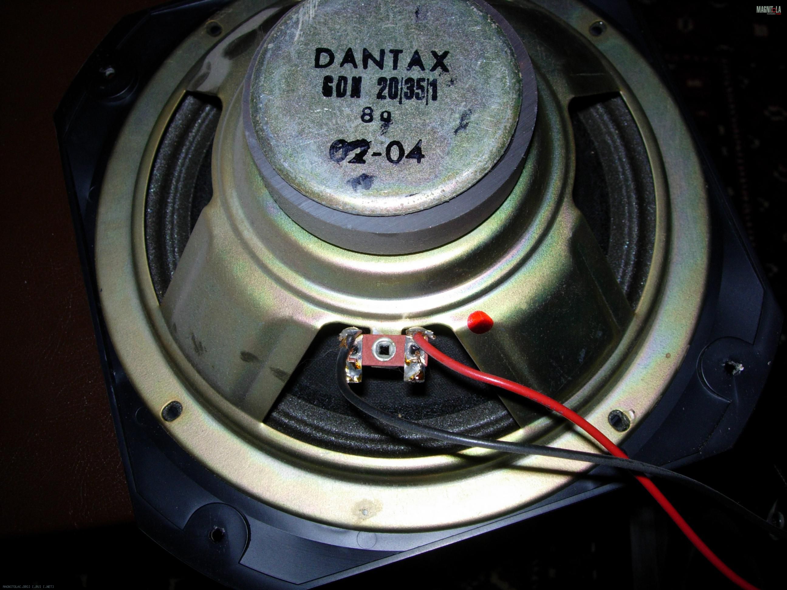 Акустика произведена в Дании из датских динов у нас малоизвестной фирмы Dantax. Снял НЧ - лицо вытянулось - не ожидал такой...х-м... конструкции:(