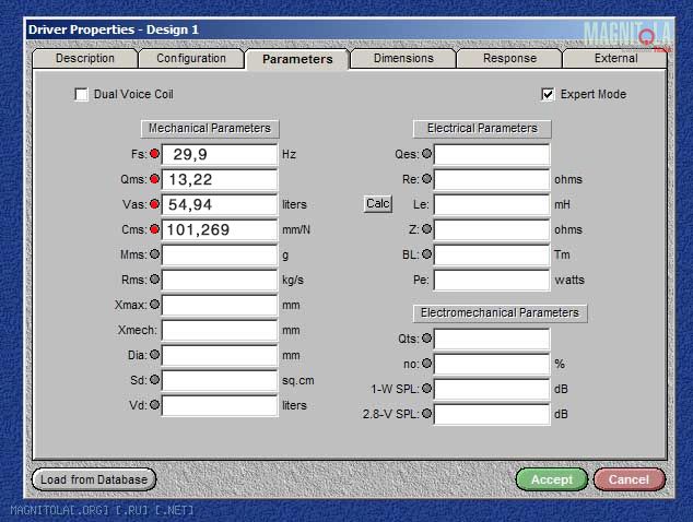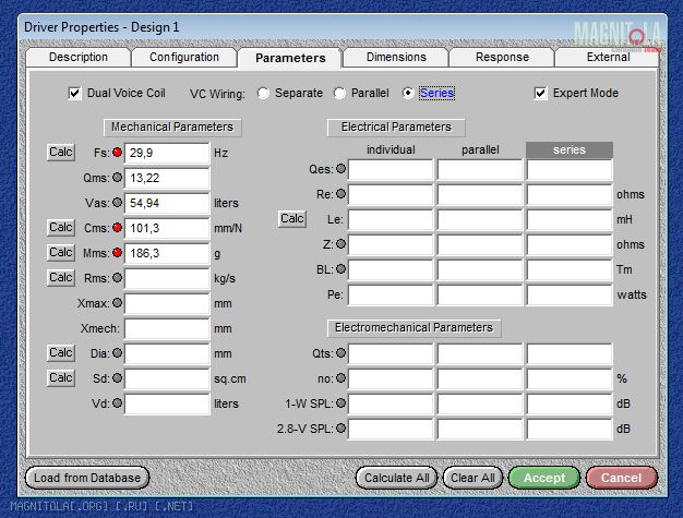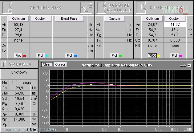 Честно говоря не понятно, что программе не нравиться в водимых параметрах, БасБокс я не пользуюсь, я пользуюсь JBL SS. Ввёл заявленные параметры Т-С в JBL SS, всё нормально, ни каких конфликтов в вводимых параметрах не возникло. Результат расчёта при оформлении в ЗЯ, который выдала JBL SS, не стал для меня каким то не обычным, такой результат я и предполагал в самом начале знакомства с девайсом, просто проанализировав Т-С в уме, там в принципе все параметры как по букварю раскладываются в закономерность и вывод о требуемом объёме ЗЯ. В общем, объём корпуса ЗЯ это канонический кубофут, т.е. 28 литров. Это центральная величина объёма ЗЯ, т.е. объём сочетающий в себе максимальную компромиссность и универсальность сабвуфера. Можно в зависимости от тех или иных основных критериев музыкальных предпочтений и типа кузова автомобиля варьировать объём корпуса ЗЯ в диапазоне 25-31 литр.