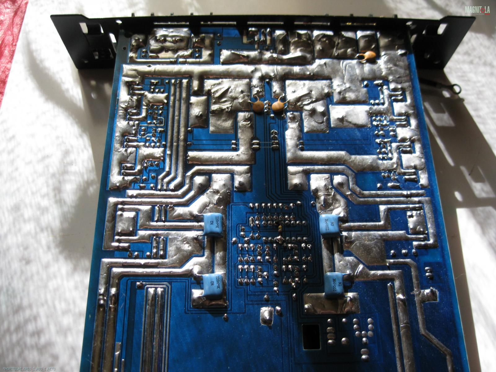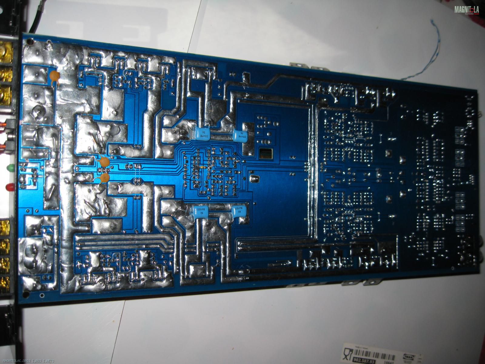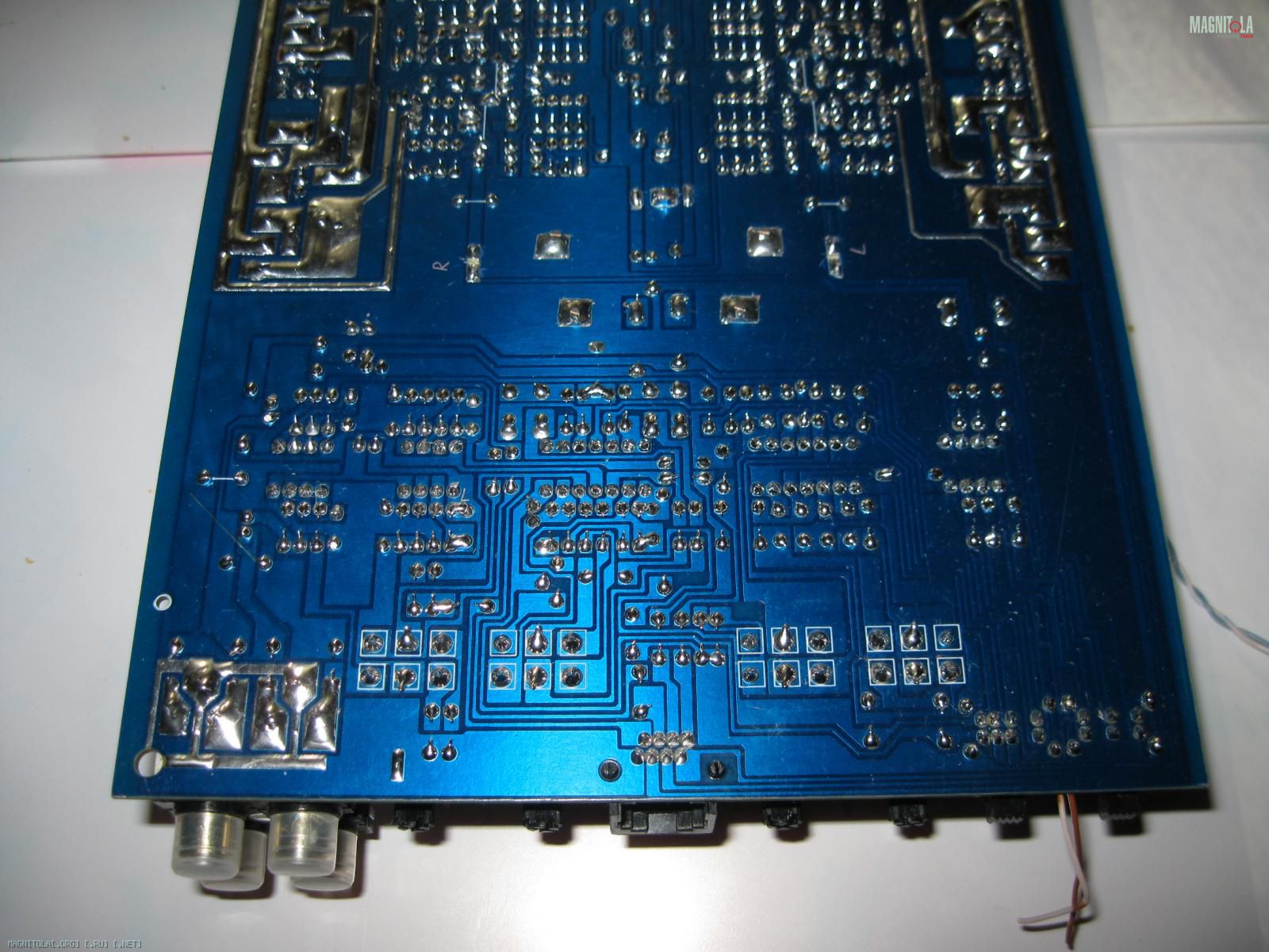 Следующий этап при твике усилителей подобного технологического процесса, т.е. односторонняя плата, это естественно тотальная пропайка всех заводских паек.