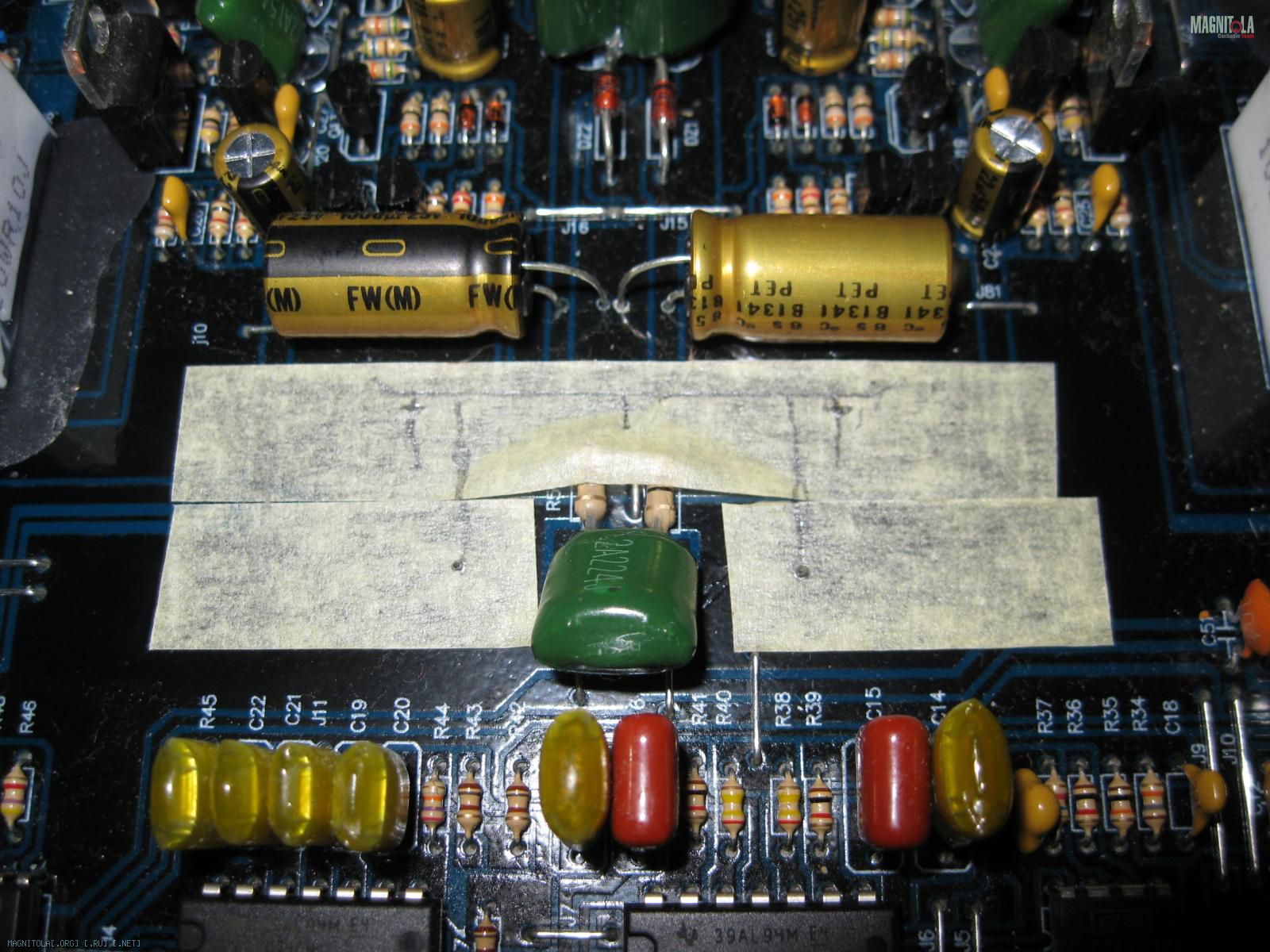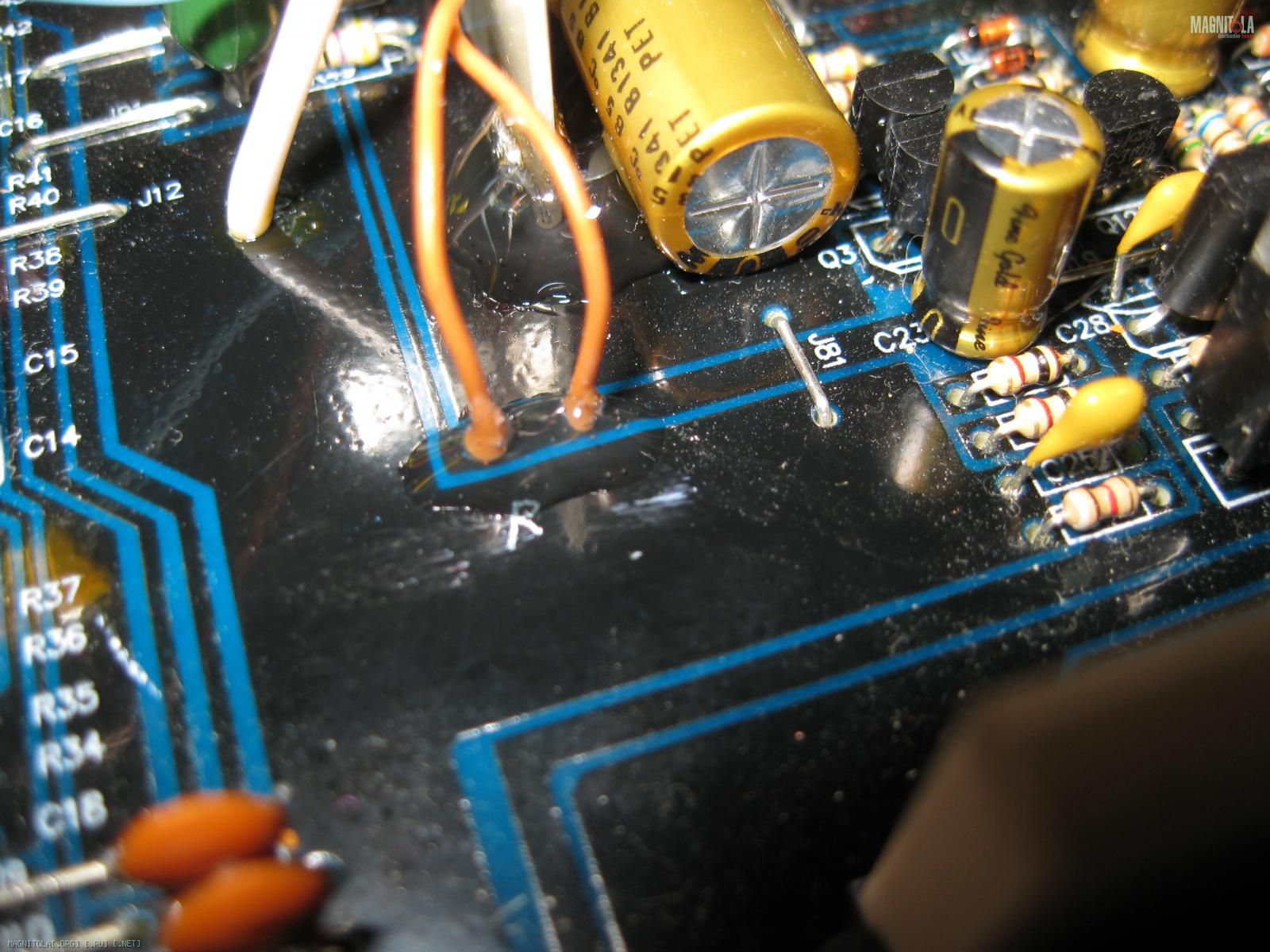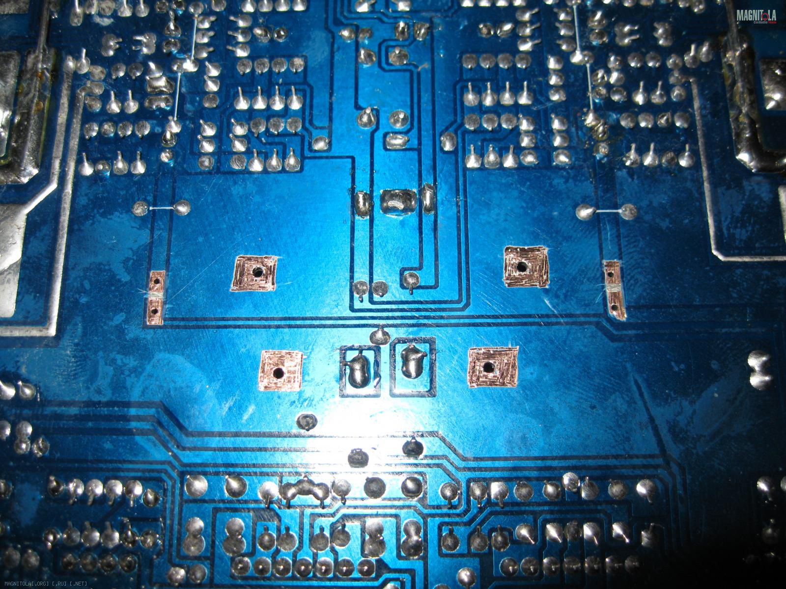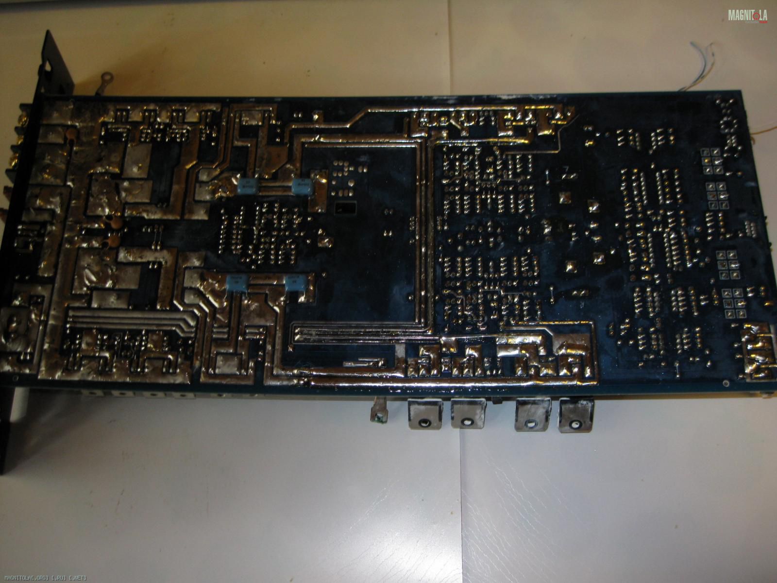 Следующий этап при твике усилителей подобного технологического процесса, т.е. односторонняя плата, это естественно тотальная пропайка всех заводских паек.