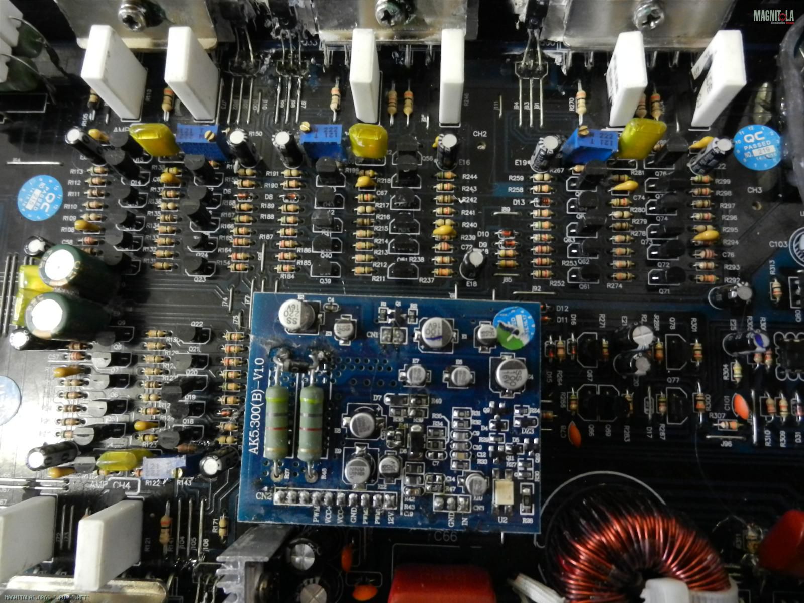 Осилил собственноручно твик этого усилителя и традиционно спешу рассказать о процессе. В буфере первичного питания стоковые конденсаторы суммарной ёмкостью 13200мкФ заменены на два по 10000мкФ. Даже не знаю, будет ли от этого польза или нет, т.к. здесь нет дросселя, который традиционно быть должен и на котором идут не слабые потери:). Фильтр вторичного питания каналов 1-4 увеличен с номинала 4400мкф на каждом плече до величины 11600мкф, а на сабвуферном канале - с 2200мкФ до 4400мкФ. Как это сделано можно увидеть на картинке. На этапе модернизации каскада предварительного усиления впаяны конденсаторы 56пкФ и 15пкФ точно так же и в те же места, что и в теме Твик Ural AK 4.90. Впаяны подстроечные резисторы установки начального тока покоя выходных каскадов УМ (2,2 кОм). На следующем этапе модернизации части усилителя, отвечающую за предварительную обработку, коммутацию режимов работ и предварительное усиление, заменены тупо все стоковые ОУ NJM4558 на NE5532 от Ti. На этапе модернизации параметрического стабилизатора +/-15В параллельно штатным резисторам впаяны керамические пятиваттные 430 Ом и заменены буферные конденсаторы 100 мкФ на 470 мкФ (low esr). С обратной стороны платы дополнительно пропаяны силовые токоведущие дорожки и наиболее длинные из них усилены медной моножилой 2,5 мм. кв. Этой же моножилой заменены провода, коммутирующие аудиосигнал с выходных транзисторов до клемм каналов 1-5. Параллельно конденсаторам буферов вторички подпаяны плёночники 0,1 мкФ: на 63В для каналов 1-4 и на 100В для канала 5. Во время сборки усилителя не забыта дополнительная фиксация конденсаторов, подстроечных резисторов и винтов прижимных пластин строительным герметиком/клеем.