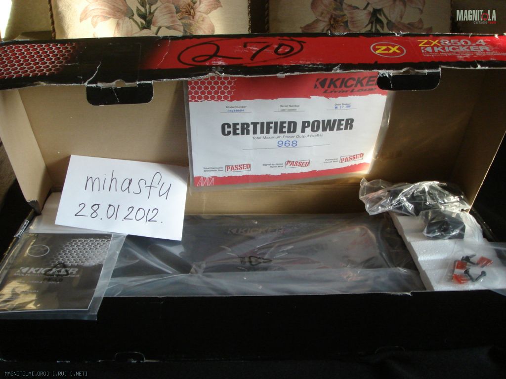 Фактическая мощность усилителей Kicker серии ZX всегда превышает его номинальную мощность. Сертификат измерений присутствует.