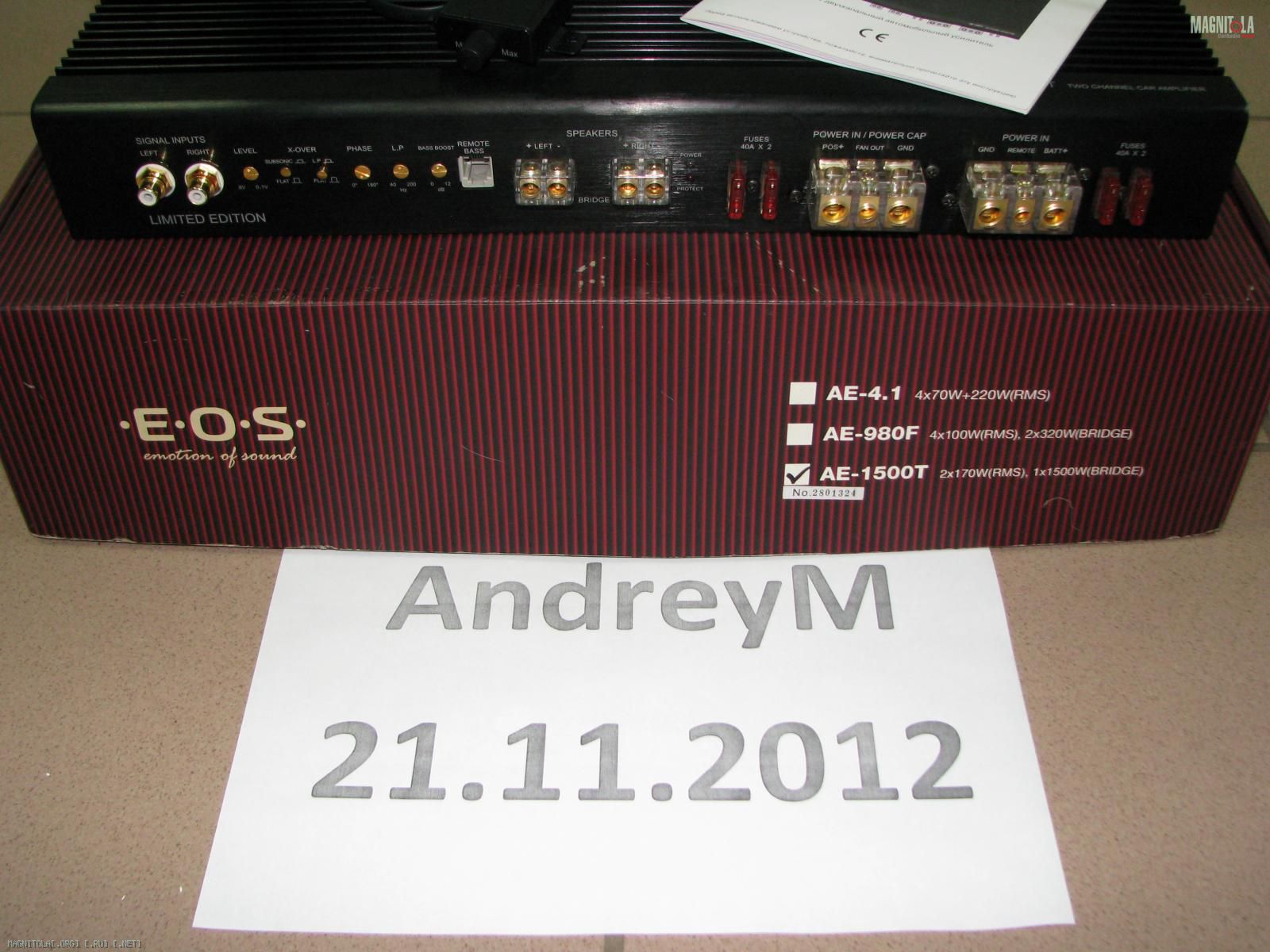 Усилитель класса Тор Hi-Fi модели AE-1500 T работает в Real Class AB. Комплектуется сдвоенными мощными (160 Вт) комплементарными биполярными транзисторами фирмы Sanken (Япония), электролитическими конденсаторами Rubycon (Япония), операционными усилителями AD 712 (США).