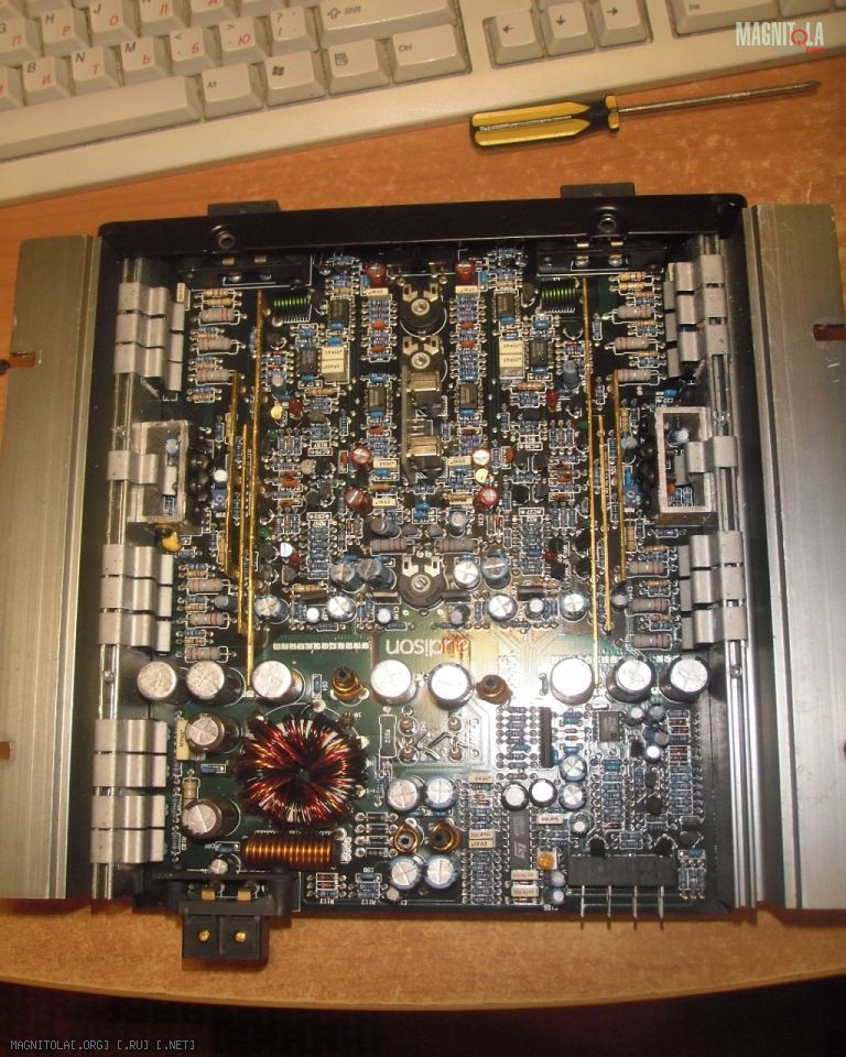 Усилитель 100% рабочий, ремонтов при вскрытии не заметил.