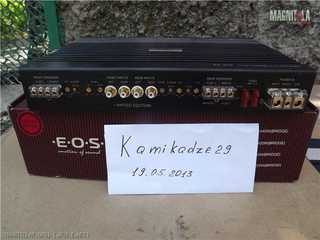 Продаю усилитель E.O.S. AE-90F Limited Edition. Играл в поканалке на фронт 1,5 года. Не нагружался. Коробка, доки, чеки в наличии.