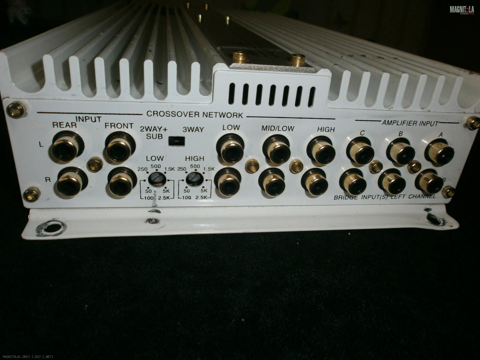 6 канальный усилитель с развитым кроссовером. Легко сделает трешку. Масса вариантов подключения..