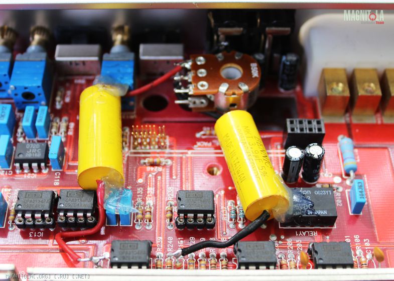 Установлена перемычка, которая пускает звук напрямую,через гейны минуя предусилительную часть сразу на оконечники. Операц.усил. заменены на ОРА 2134