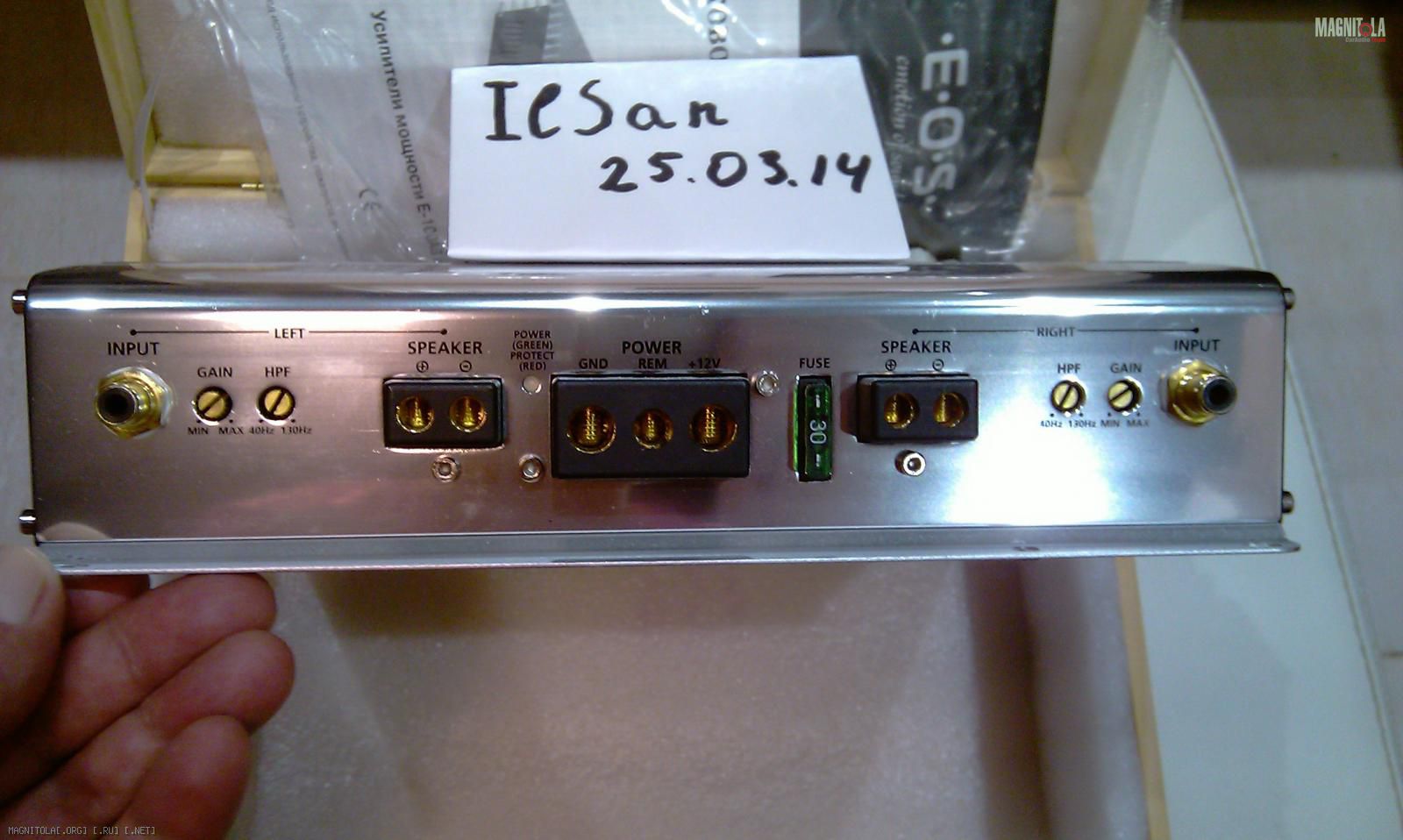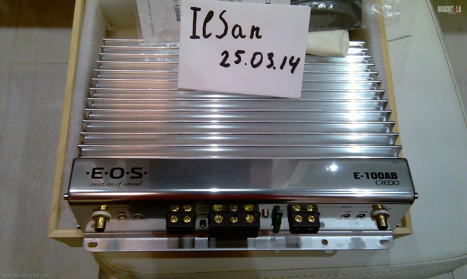 Продам E.O.S. E-100AB, б/у немногим более года (играл гораздо меньше), сделан небольшой твик (выставлен ток покоя, заменены электролиты в цепи ООС на BG), играет замечательно, косяков нет, на корпусе есть несколько царапин и просверлено ещё одно крепёжное отверстие. Причина продажи: E.O.S. Classic-50 или Alpine MRV-F409. Отправка ТК Автотрейдинг за счёт покупателя.