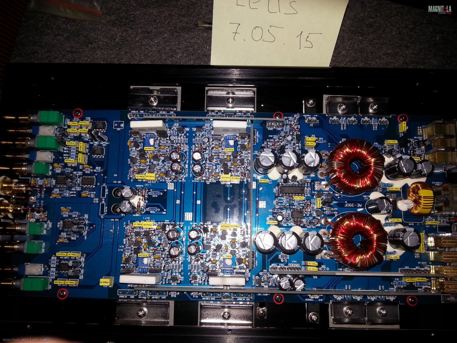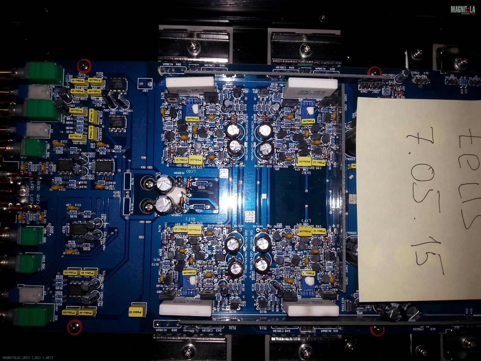 4-канальный усилитель класса TOP Hi-Fi, работает в Real Сlass AB. Комплектуется мощными биполярными транзисторами (130 Вт) фирмы Sanken (Япония), электролитическими конденсаторами фирмы Rubycon (Япония). Оснащен мощными тороидальными трансформаторами питания и операционными усилителями ОРА 2134 и AD 712 (США).