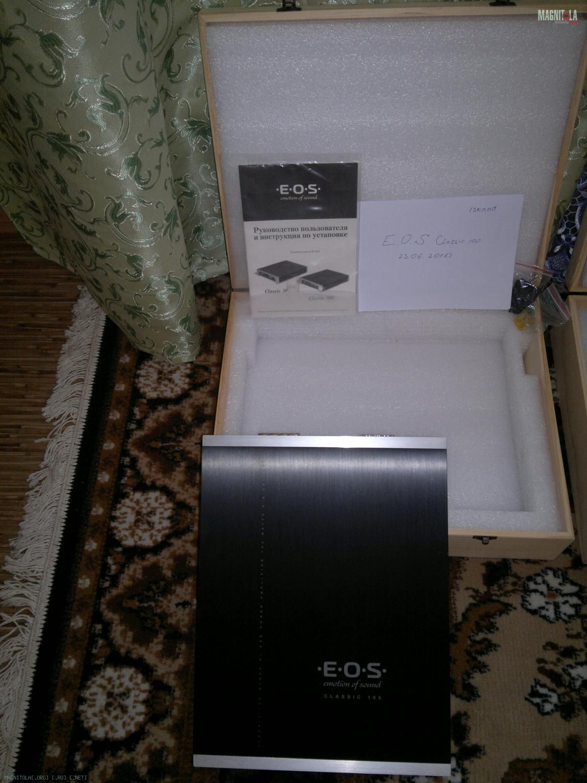 Продам 2-х канальник E.O.S. Classic 100. Не вскрывался,не ремонтировался и т.д. В отличном состоянии, бережная эксплуатация,в работе максимум месяц. Полный комплект. В наличии 2. Цена за штуку. Более подробные фотки по запросу. Ссылка на тест Двухканальный усилитель E.O.S. Classic 100. Лаборатория. В сравнении Вложение 801752Вложение 801754