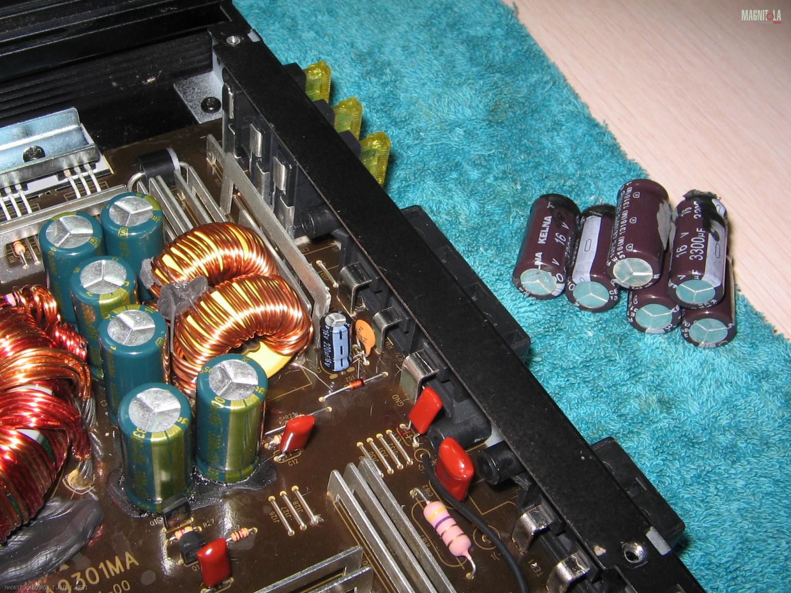 Хорошее состояние, перед продажей решил вскрыть посмотреть как дела внутри, обнаружил немного вздувшиеся 2 конденсатора на входе. Решил поменять на идентичные по параметрам но лучшие по качеству jamicon wl все 6шт.