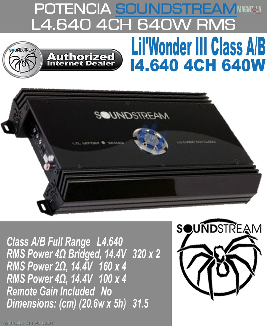 Продам усилитель 4-х канальный Soundstream L4.640 в отличном состоянии как внешне на 5 так и технически на 5, не ремонтировался.