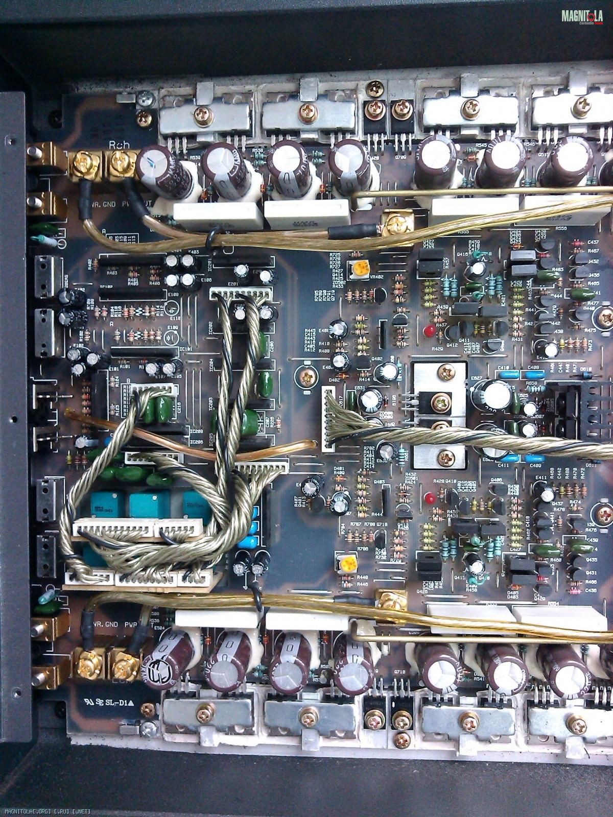 Из минусов: отсутствует верхняя планка, закрывающая регулировки, и в процессе работы горит желтым цветом лампочка "Protection". Она у меня горит с самого первого включения, но по ощущениям усь работает в номинальном режиме. Внутри следов ремонта не обнаружено.