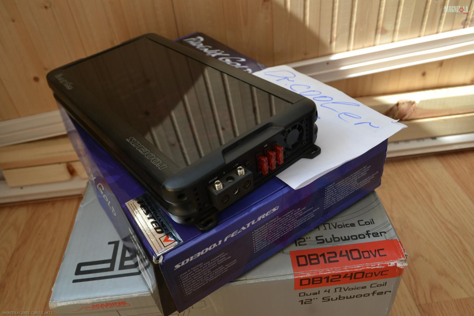 В идеале, брал новым, все коробочки, басс-буст и проч ерунда есть, питался "+" и "-" от АКБ КГ35, играл с polk audio db 1240 dvc, нагрузка соответственно была небольшая.