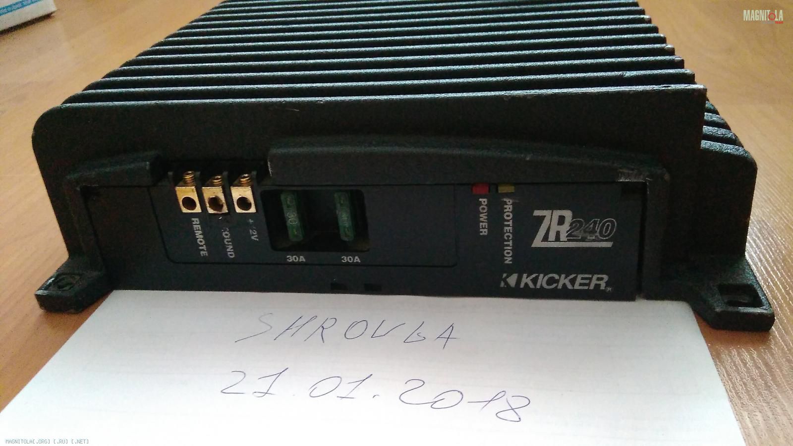 Искажения 0.02% на всем диапазоне мощностей. 2 предохранителя по 30A. Мощность RMS 60W x 2 самая что не наесть честная, при питании 12V.