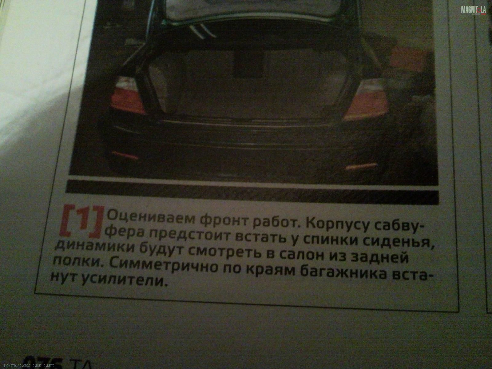 прикинь вариант с вертикальным ящиком саба.10ка требует 15литров+-.если учесть что высота от пола багажника до полки 50-60см то глубина-ширина ящека будет равна размеру дина-25см.+не надо с полкой пекаться.(это ж не только полка а еще спинка сидения и ТОТАЛНАЯ ШВИ БАГАЖНИКА)на крайняк просто отверстие в полке над сабом.+зя намного проще реализовать.+результат в зя гарантирован а во фри х.з.