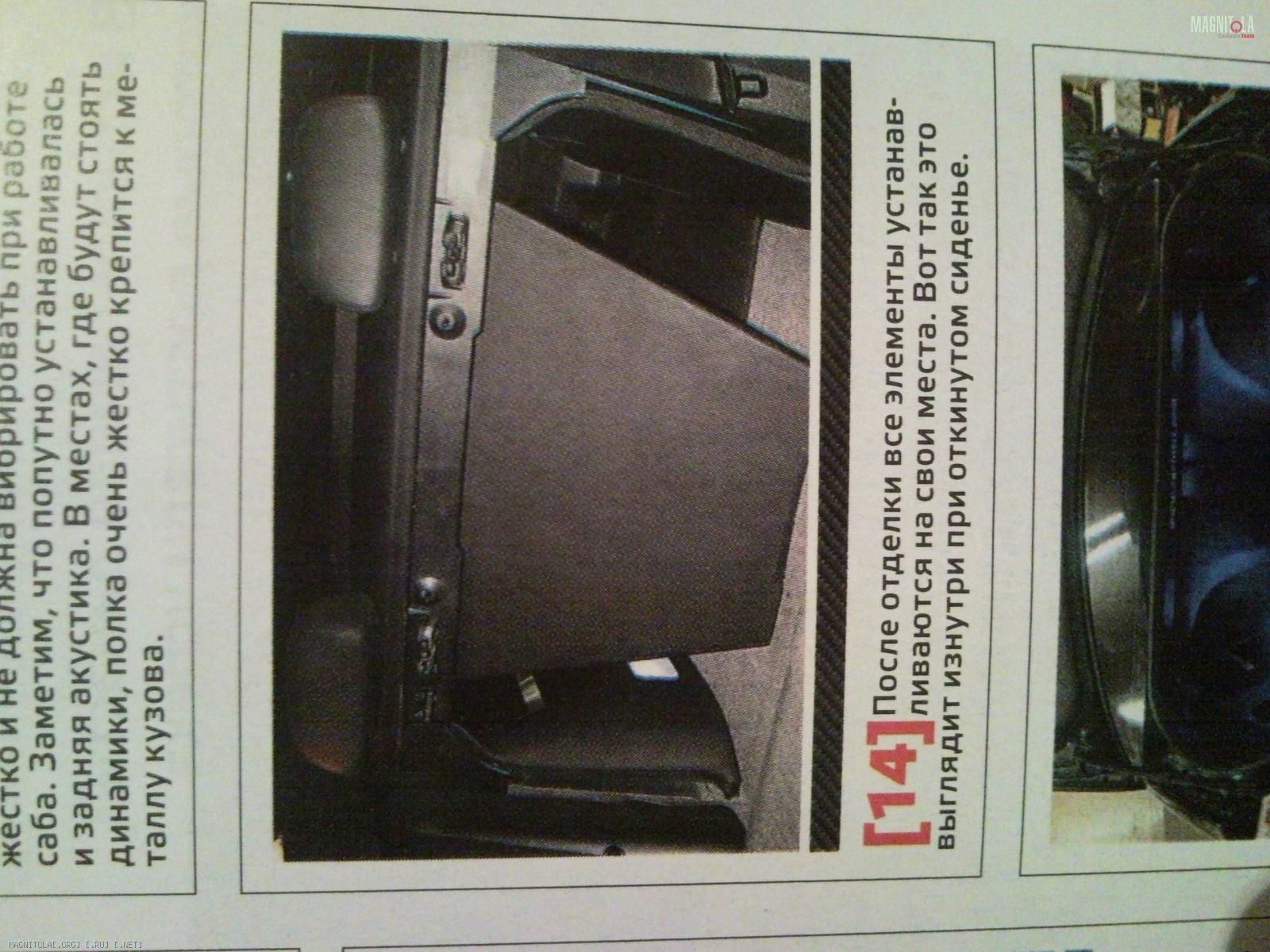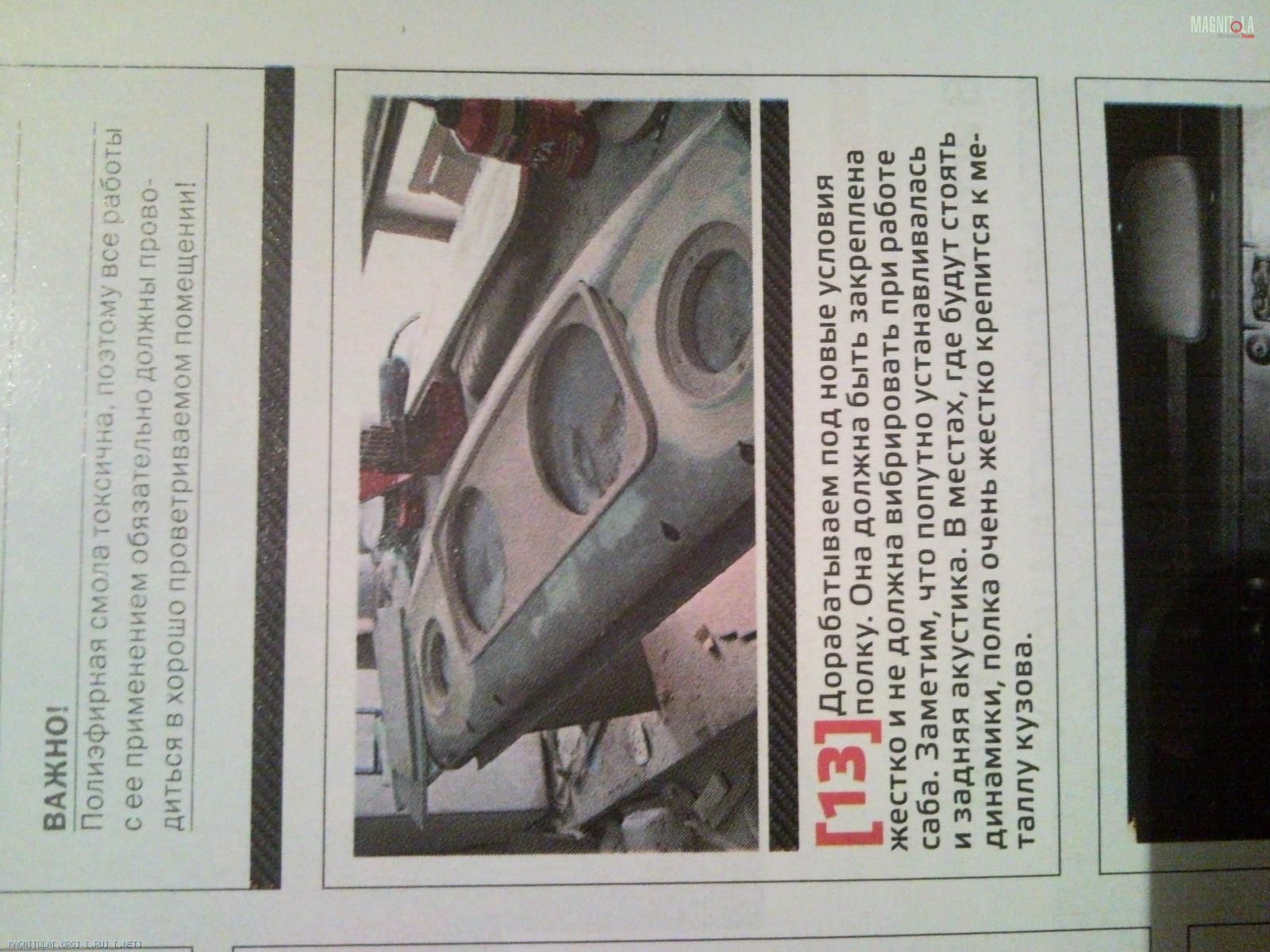 Как все поставишь-дай знать!Просто я только недавно начал немного вникать в тему автозвука!Может тоже заменю Аудисон на Пролоджи и короб выкину!?)Чтобы весь звук шел не ко мне в салон,а был напоказуху на улицу!)Чтобы "реально качало на...") И даже"багажник дребежжал!"Ведь можно сделать форму из стекловолокна в ширину полки на сужение вниз!?И будет абсолютно независимо от багажника и полезного места почти не убавится!ВСЕ к тебе!Не торопись!Ты же делаешь ТОЛЬКО для себя!!!