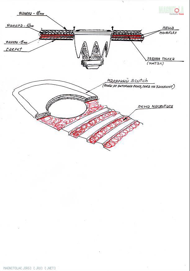 Схема задней полки для сабвуфера Free Air рекомендованная Резниковым В.Л.