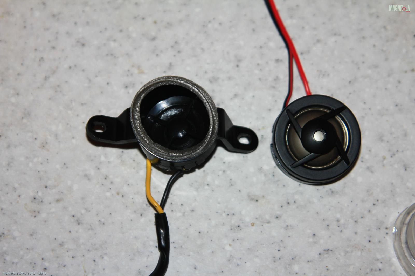Шумка сделана. Замена акустики была так как стандартная вообще ни какая двух омники. По схеме сигнал идет от усилителя на твитер. Вчера запитал твитер без кросовера через лампу 10W и конденсатор 3,3мф. Звук стал на много лучше. Стоит возвращать кросовер который идет с акустикой.