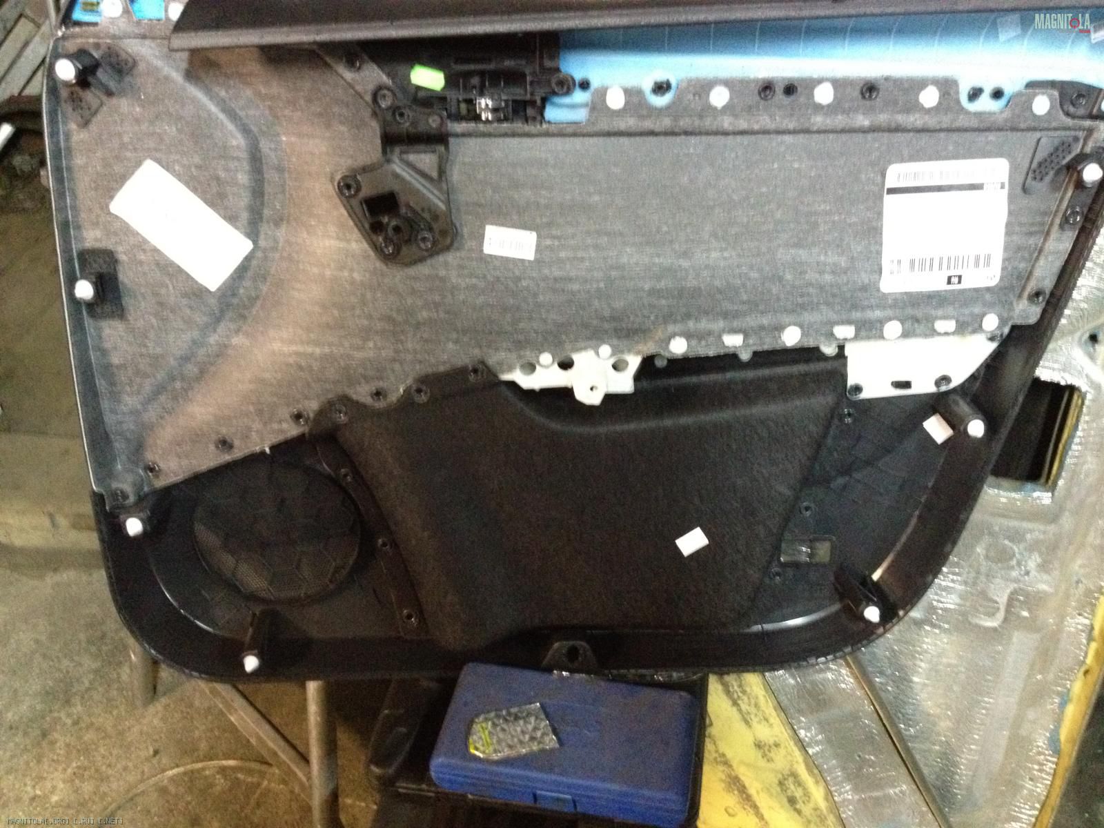 Материал верхней части обшивки похож на некую ткань. А материал нижей части похож на плотный карпет.
