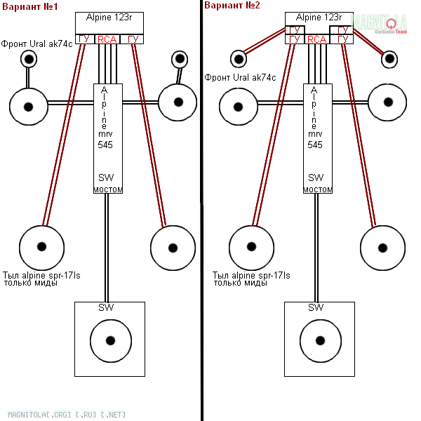 это конденсатор, который служит фильтром. При подключении вариантом №2 его можно убрать - у ГУ есть ФВЧ, порезать с него. Сигнал на мид (фронт и тыл) тоже можно порезать с ГУ. Если не ошибаюсь там даже есть полосовой фильтр. Сигнал на саб также с ГУ.