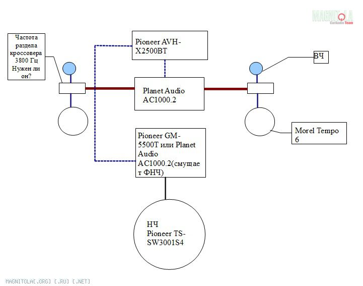Пытаюсь вникнуть в теорию АЗ., составил схему будущей звуковой системы в своем авто.(PRO_CEED 2009).